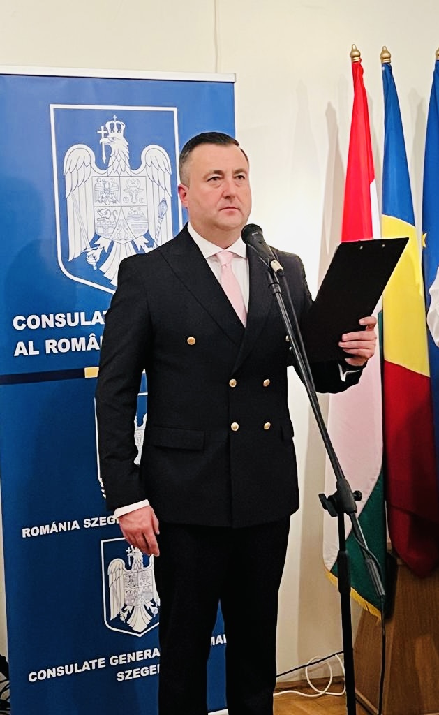 Consulatul General al României la Seghedin (Szeged), a organizat vineri, 8 decembrie 2023, o recepție dedicată Zilei Naționale a României. Evenimentul s-a desfășurat la sediul filialei Seghedin a Institutului Cultural Român Budapesta, fiind prima ediție a acestei manifestări organizată sub coordonarea E.S. Florin Trandafir Vasiloni, după preluarea recentă a mandatului de Consul General al României la Seghedin.