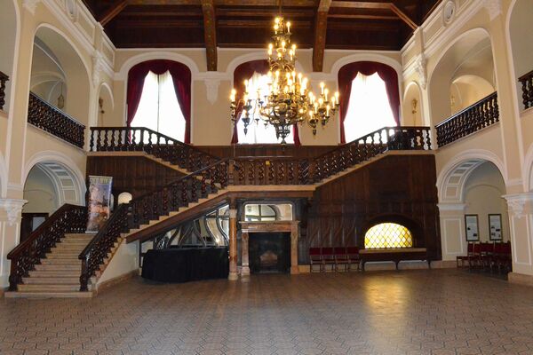 Din monografia comitatului şi din cărţi poştale de la începutul secolului al XX-lea, cunoaştem şi amenajarea interioară a acestei încăperi. Mobilierul urma modele englezeşti cu canapele şi fotolii din piele, dar pe lângă acestea acest spaţiu era decorat şi cu vaze, coarne de cerb, plante exotice de mărimi grandioase etc.