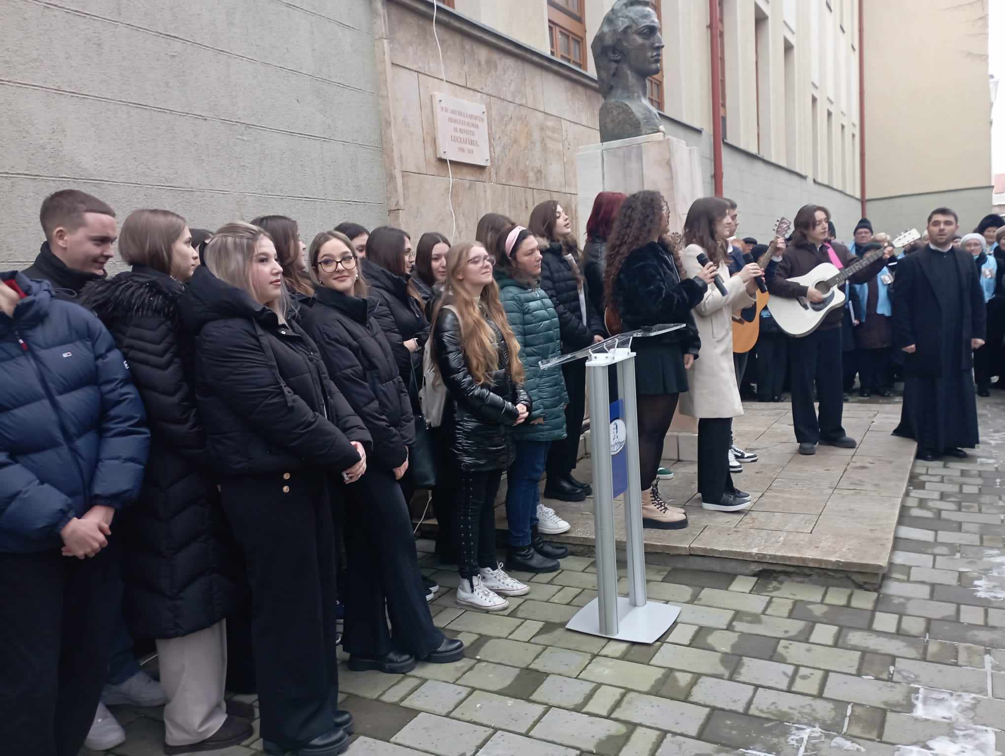 La manifestările dedicate Zilei Culturii Naționale și, implicit, împlinirii a 174 de ani de la nașterea poetului național Mihai Eminescu, desfășurate la bustul Luceafărului poeziei românești din fața Colegiului Național ,,Mihai Eminescu’’ au participat un număr mare de sătmăreni în ciuda frigului pătrunzător.