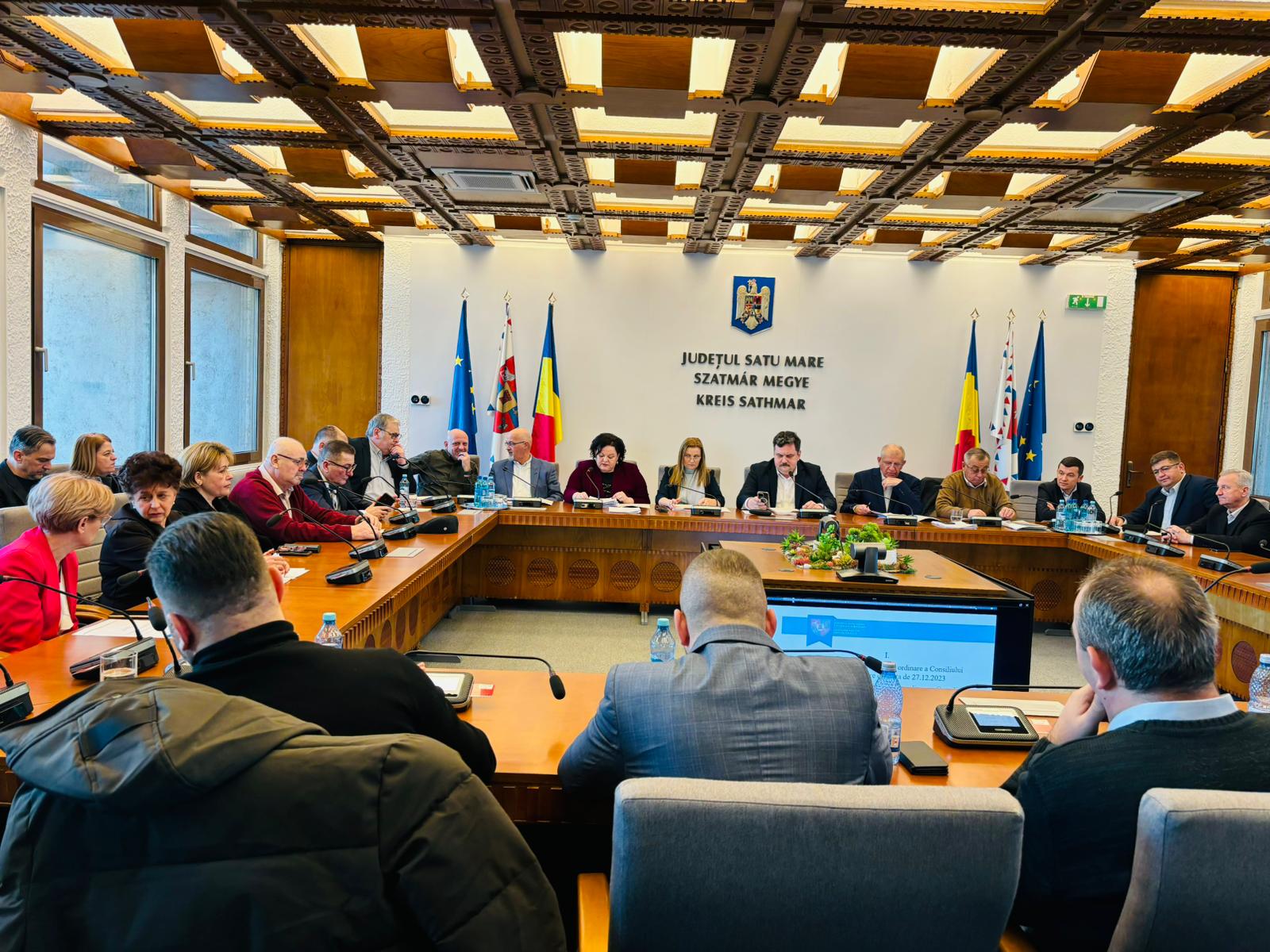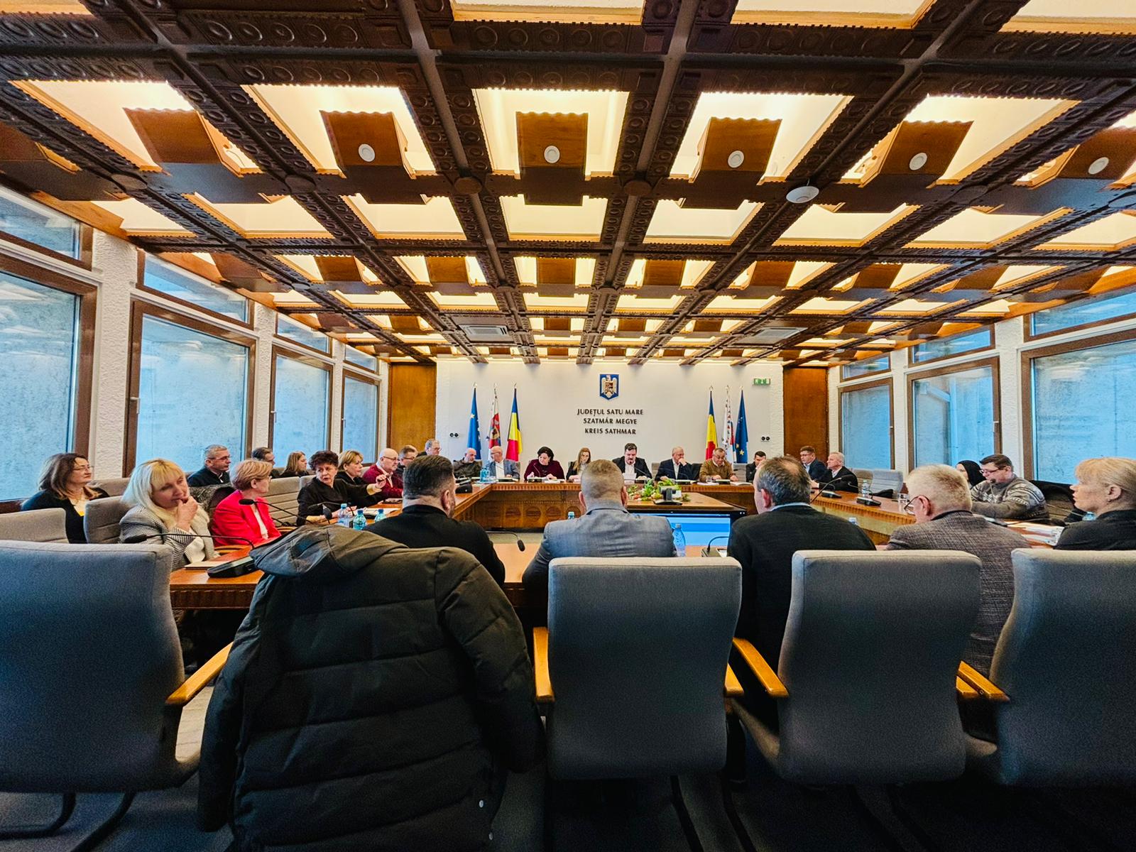 La şedinţa care a avut loc în cursul zilei de vineri, alături de consilierii judeţeni, au participat şefi de servicii din cadrul Consiliului Judeţean Satu Mare, dar şi directori de instituţii subordonate Consiliului Judeţean.