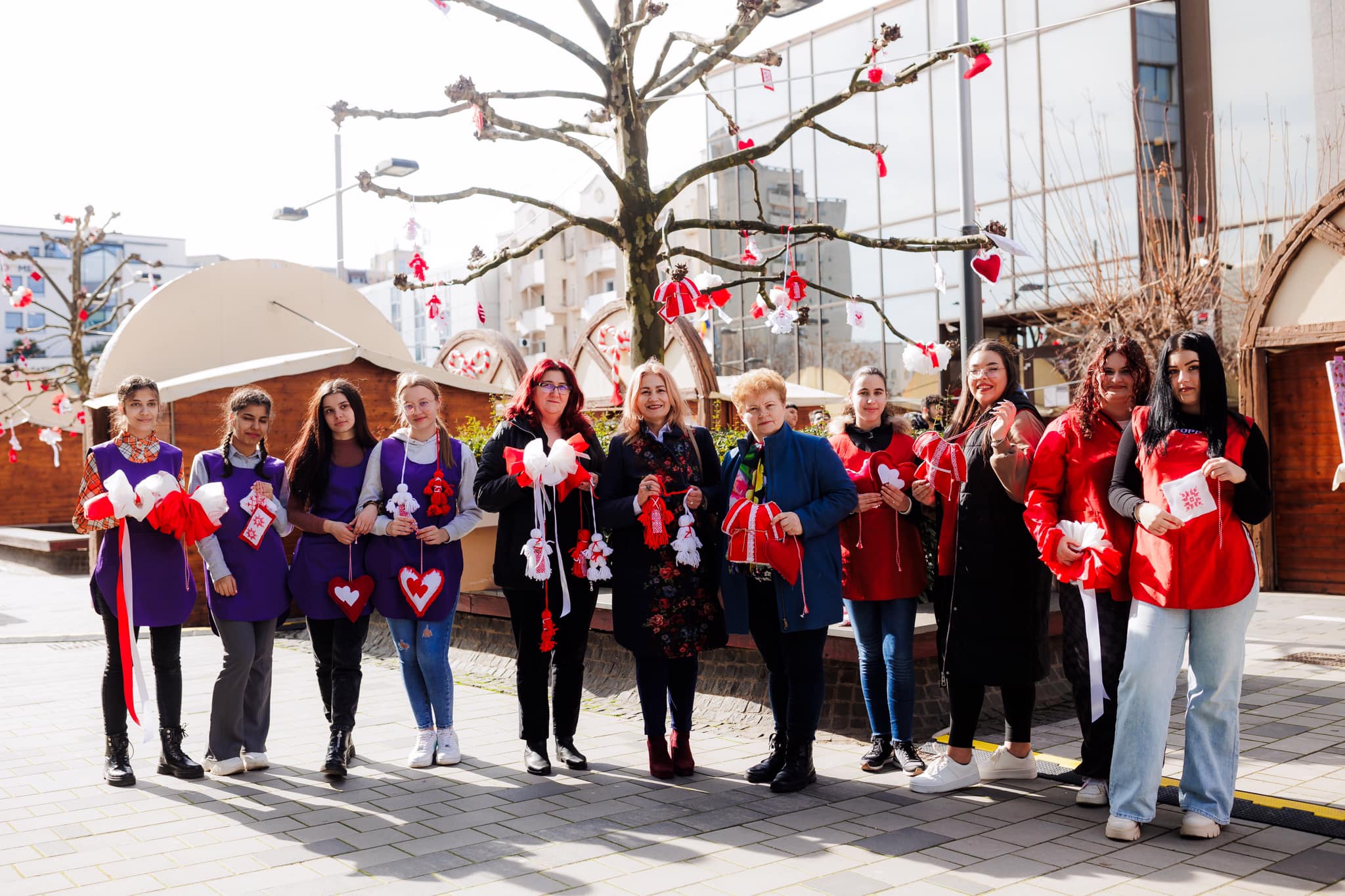 Mărțișoare realizate cu dăruire de eleve ale Liceului Tehnologic ,,Elisa Zamfirescu” înfrumusețează din data de 26 februarie copacii din Pasajul Corneliu Coposu.