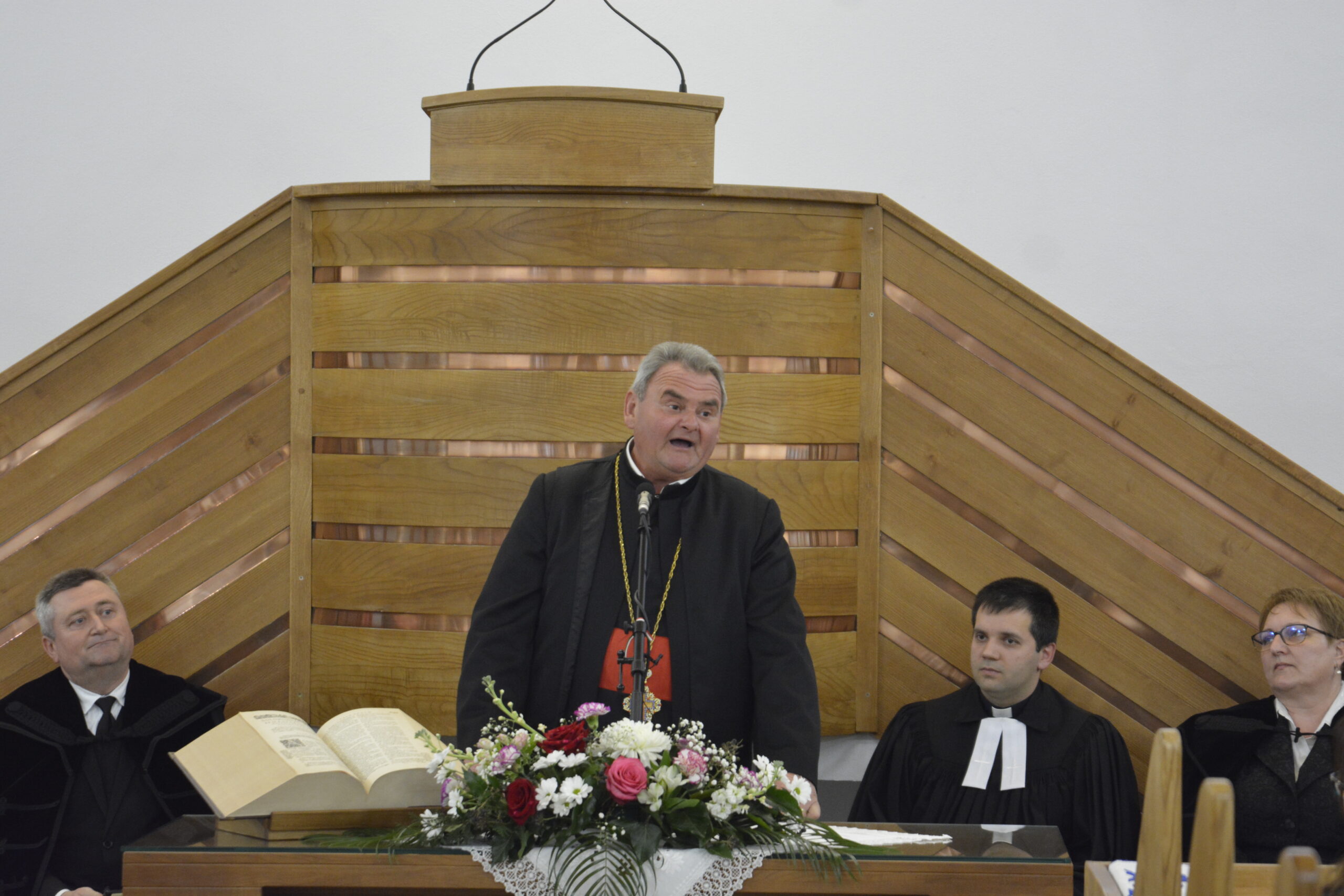 A urmat rândul părintelui Leontin Sălăjan, reprezentant al Protopopiatului Ortodox Român din Carei - Capela de la Spital - ca să rostească un cuvânt de învățătură și o rugăciune.