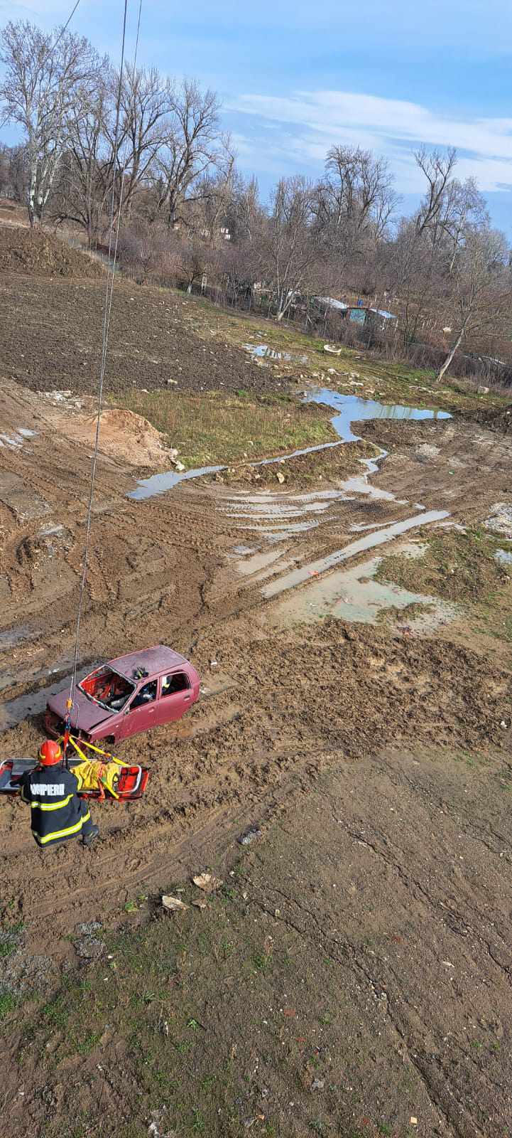 Din primele informații, în interiorul autoturismului se aflau 4 ocupanți dintre care 3 persoane s-au autoevacuat, iar una rămânând încarcerată și căzând în gol cu automobilul.