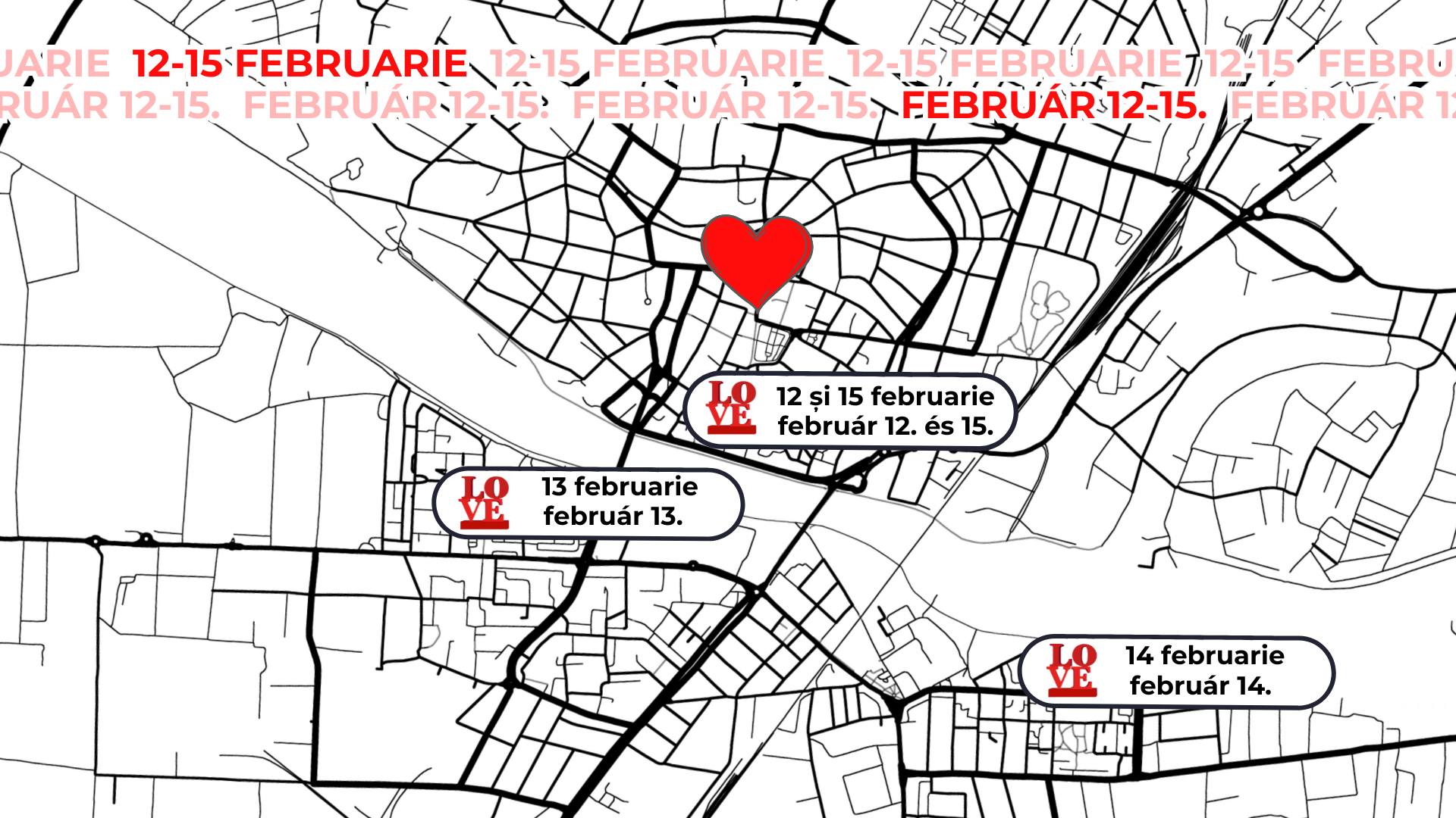 În perioada 12-15 februarie, în inima orașului, la intersecția dintre strada Ștefan cel Mare și Piața Libertății, sătmărenii sunt așteptați la un punct foto unic pentru a imortaliza iubirea.Alte puncte foto îi așteaptă pe sătmăreni în 12, respectiv 15 februarie în Piața 25 Octombrie, în 13 februarie în Parcul Liniștii din cartierul Micro 16, iar în 14 februarie în Parcul UFO din cartierul Micro 17.