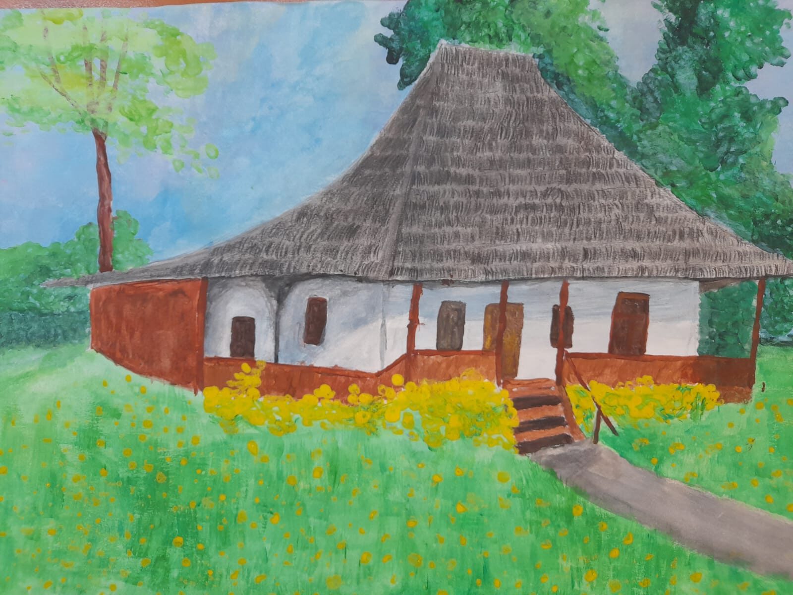 („Muzeul satului” Dragoș Ioana- clasa a IX-a C, Colegiul Național „Ioan Slavici” Satu Mare - profil Matematică – Informatică - Bilingv Engleză, Tehnica: Tempera, Profesor: Irina Florea)
