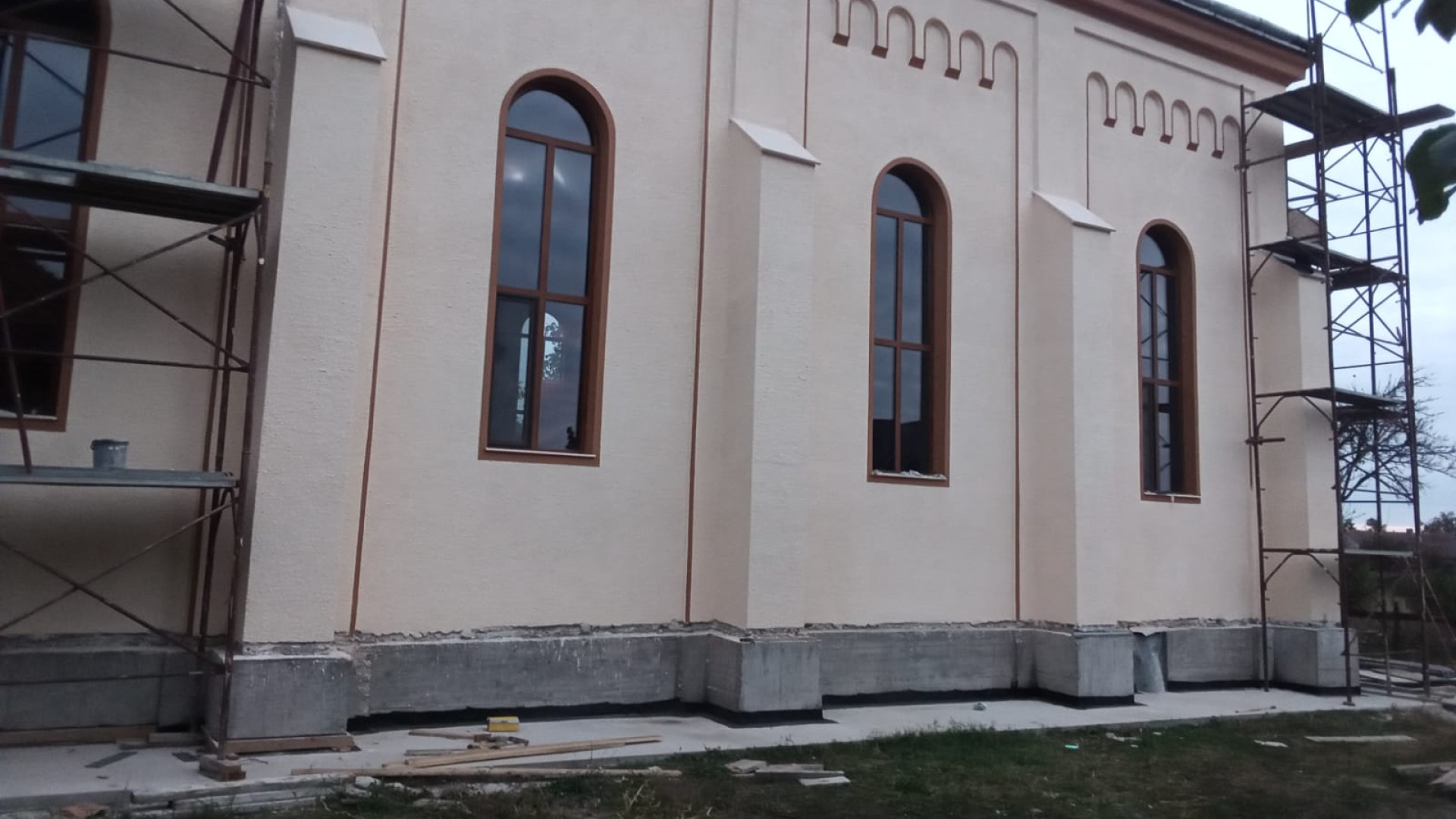 Apoi are loc zugrăvirea exterioară a pereților în tonul cromatic : - galben – crom- alb recomandat prin avizul Institutului de Patrimoniu, cromatică existentă la construcția bisericilor în secolul XVIII-XIX.