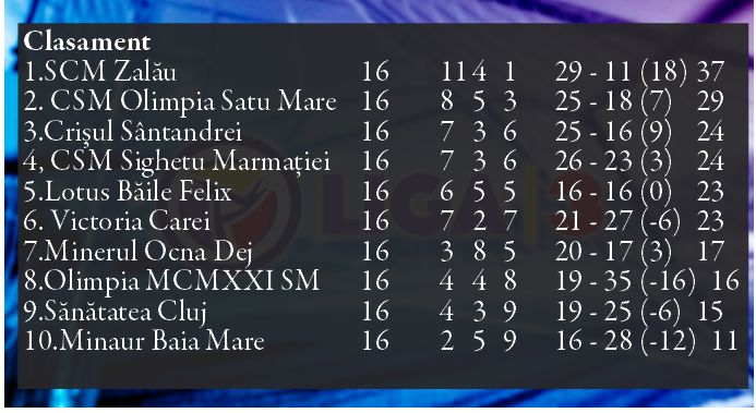 Cu această înfrângere CSM Olimpia Satu Mare rămâne pe locul doi al clasamentului seriei a 10-a, însă se îndepărtează la opt puncte de liderul SCM Zalău care a remizat, 0-0 pe terenul ultimei clasate.