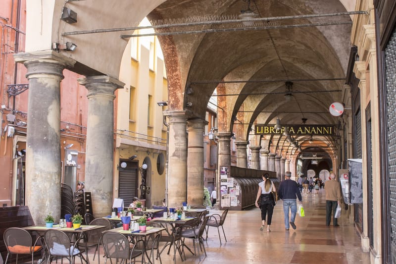 Bologna este renumită pentru aleile sale acoperite, numite Porticoes. Aceste alei datează din secolul al XII-lea și au fost concepute pentru a extinde casele, dar fără a pătrunde pe spațiul stradal. Astăzi există în Bologna aproape 40 de kilometri de alei acoperite, ce oferă o imagine simbolică a orașului.