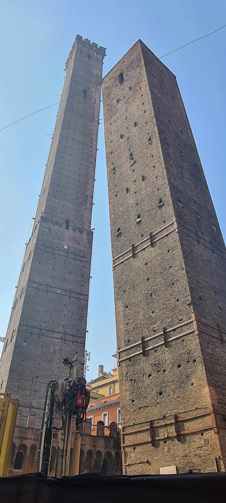 Un alt simbol al orasului Bologna sunt cele două turnuri, Garisenda si Asinelli.. În trecut, orașul avea zeci de astfel de turnuri, aparținând diverselor familii înstărite, având dublu rol de apărare și prestigiu. Turnul Asinelli a fost construit în 1109-1119, fiind cel mai înalt din Bologna la aproape 100 metri. Cele 498 de trepte din interior duc pănă în vârful său, de unde poți admira priveliștea splendidă a orașului vechi. Din păcate când am fost noi în Bologna turnurile erau în renovare așa că am putut să le admirăm doar de afară.