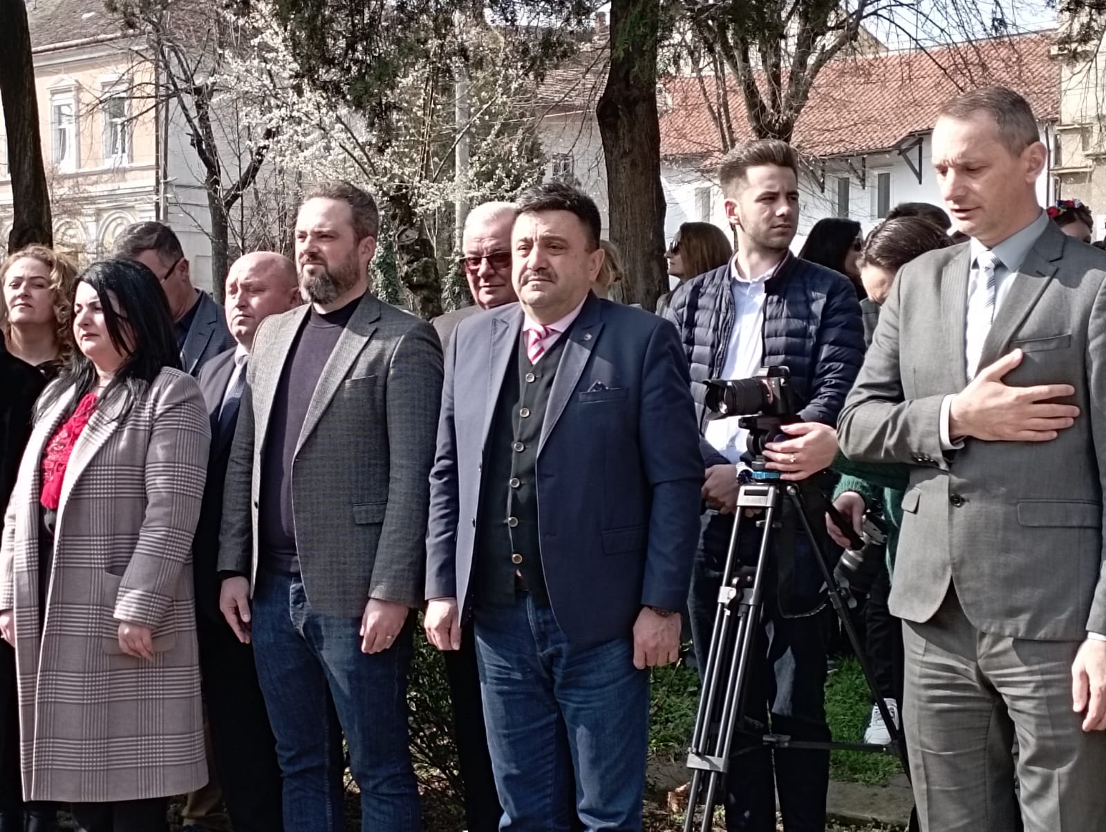 După intonarea celor două imnuri de stat și alocuțiunile rostite de invitați au fost depuse coroane și jerbe de flori la bustul poetului din municipiul Satu Mare.