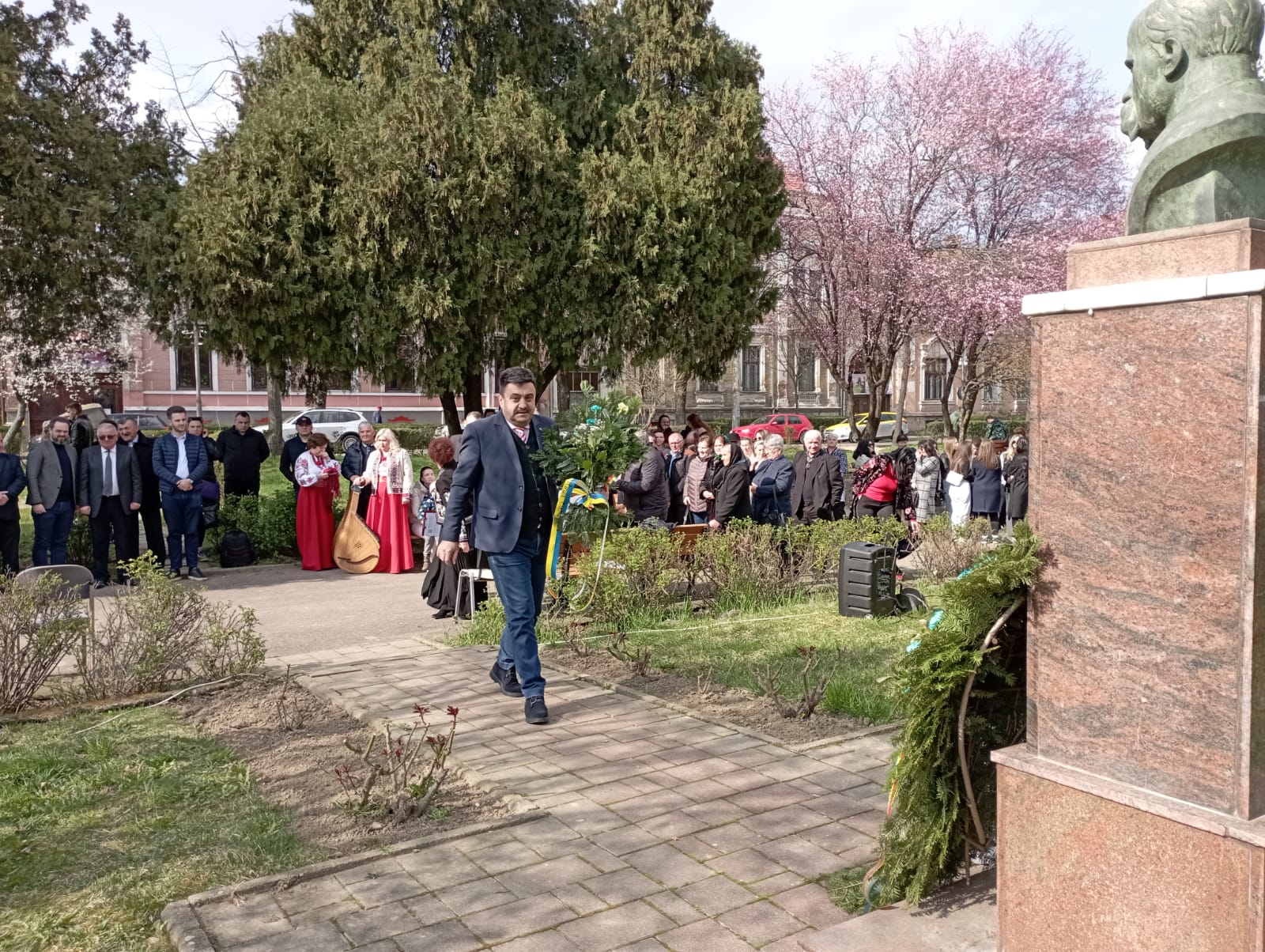 Aș dori să evidențiez rolul major pe care Uniunea Ucrainenilor din România, filiala Satu Mare, în frunte cu dr. Liuba Horvat, l-a jucat în toată această perioadă pentru a alina suferința celor afectați de acest război nedrept. Mi-aș dori ca Ziua Victoriei Ucrainei să o sărbătorim tot aici, la bustul celui care a întrupat toate năzuințele sfinte ale poporului său, marele poet, omagiat astăzi, Taras Șevcenko!”- Radu Roca.
