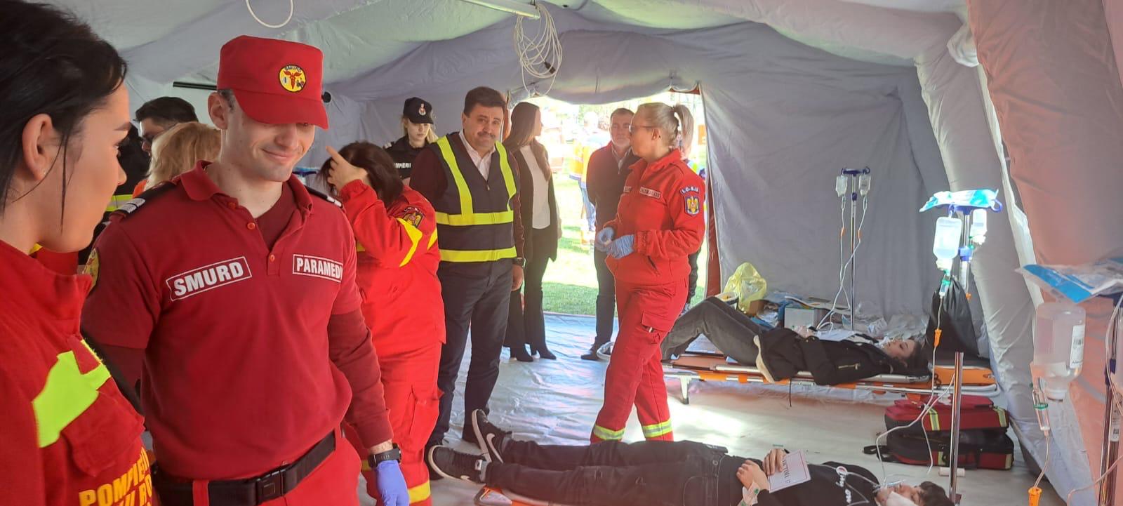 Exerciţiul de astăzi a urmărit consolidarea cunoştinţelor şi perfecţionarea deprinderilor forţelor participante în conducerea şi desfăşurarea acţiunilor de limitare şi lichidare a efectelor negative în cazul situaţiilor de urgenţă ce se pot produce în caz de seism, prin: verificarea viabilităţii planurilor de protecţie şi intervenţie pentru seism, dar şi a capacităţii de răspuns şi a cooperării pe timpul intervenţiei a serviciilor profesioniste cu serviciile private pentru situaţii de urgenţă şi celelalte forţe care asigură funcţiile de sprijin în situaţii de urgenţă.