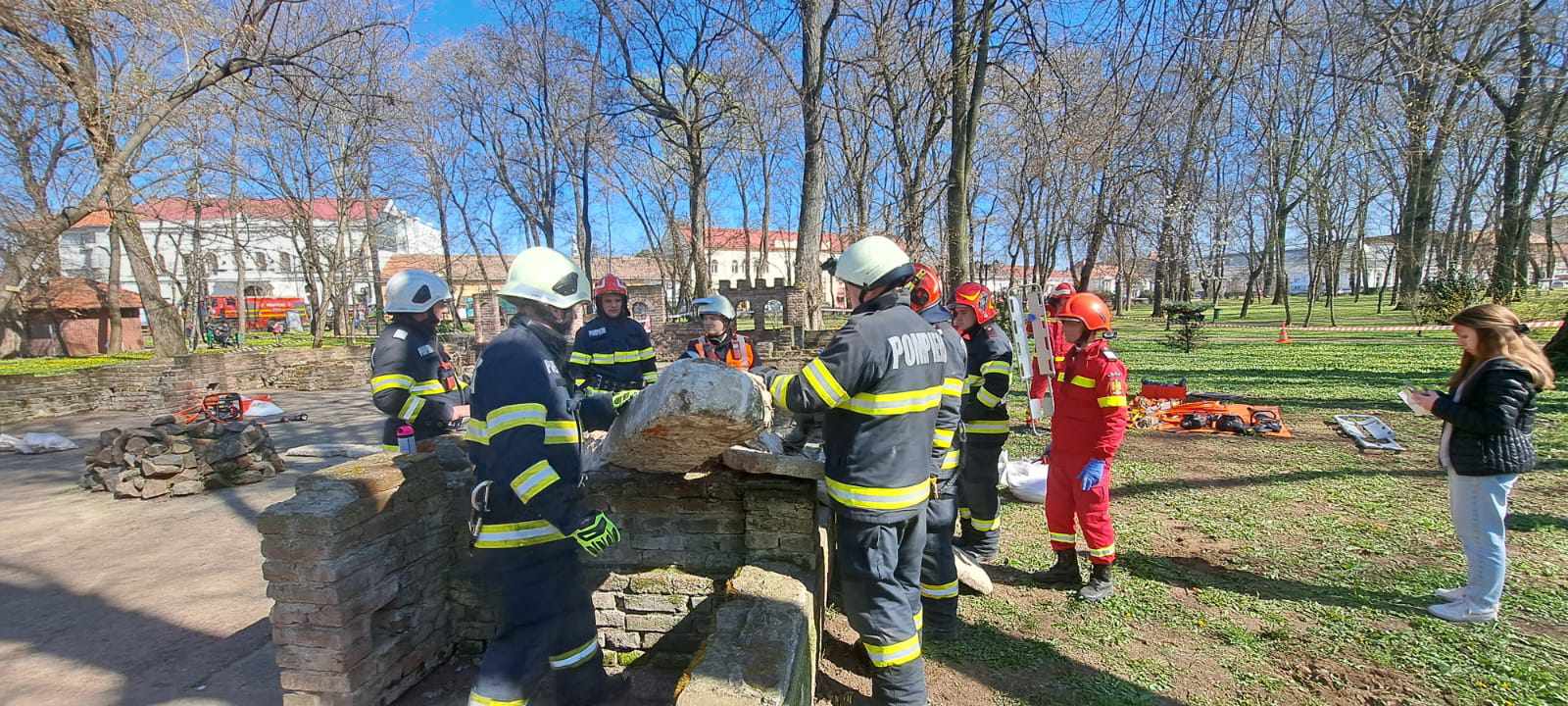 Concomitent, cu acțiunea de căutare –salvare a persoanelor rămase blocate în interiorul clădirilor afectate, sunt identificate persoane blocate în clădirea Castelului Karoly, în zona turnului și se primește un apel de la un operator economic din sectorul industriei lemnului cu activitate în localitatea Foieni despre producerea unui incendiu în interiorul depozitului de materie primă.