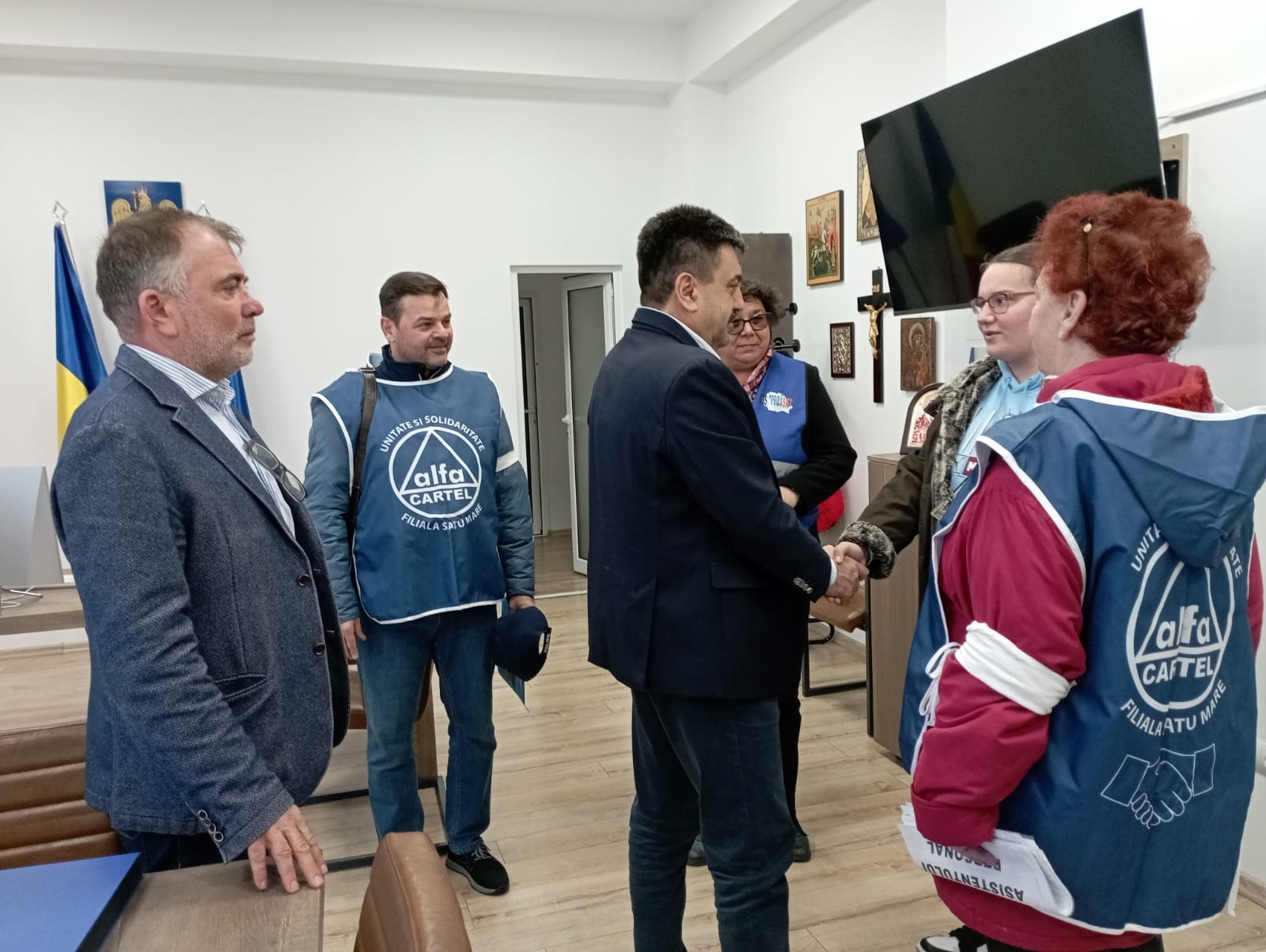 Prefectul județului Satu Mare, Radu Roca alături de directorul Cancelariei, Radu Iancu s-au întâlnit astăzi cu reprezentanții Sindicatului Asistenților Personali ,Maternali și Sociali din județul Satu Mare.