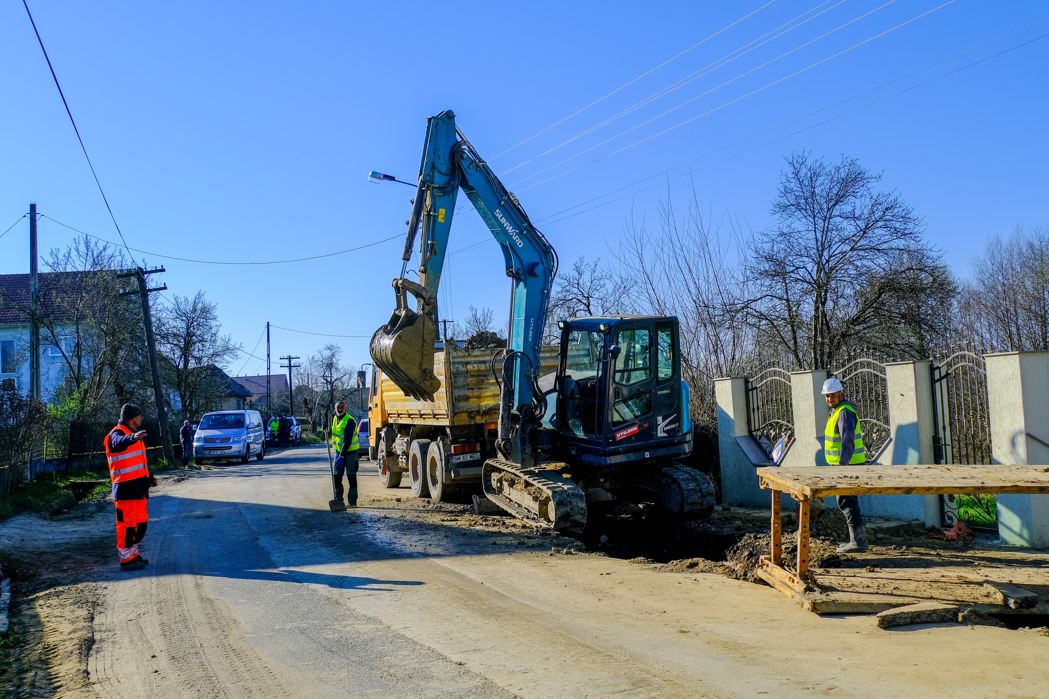 Lucrările de extindere a rețelei de apă și canalizare continuă în comunele Târșolț și Cămârzana. Președintele Consiliului Județean Satu Mare, Pataki Csaba și vicepreședintele Oliviu Buzgău au discutat recent cu executantul despre stadiul investiției și au stabilit un plan de acțiune pentru a îmbunătăți ritmul și calitatea lucrărilor.