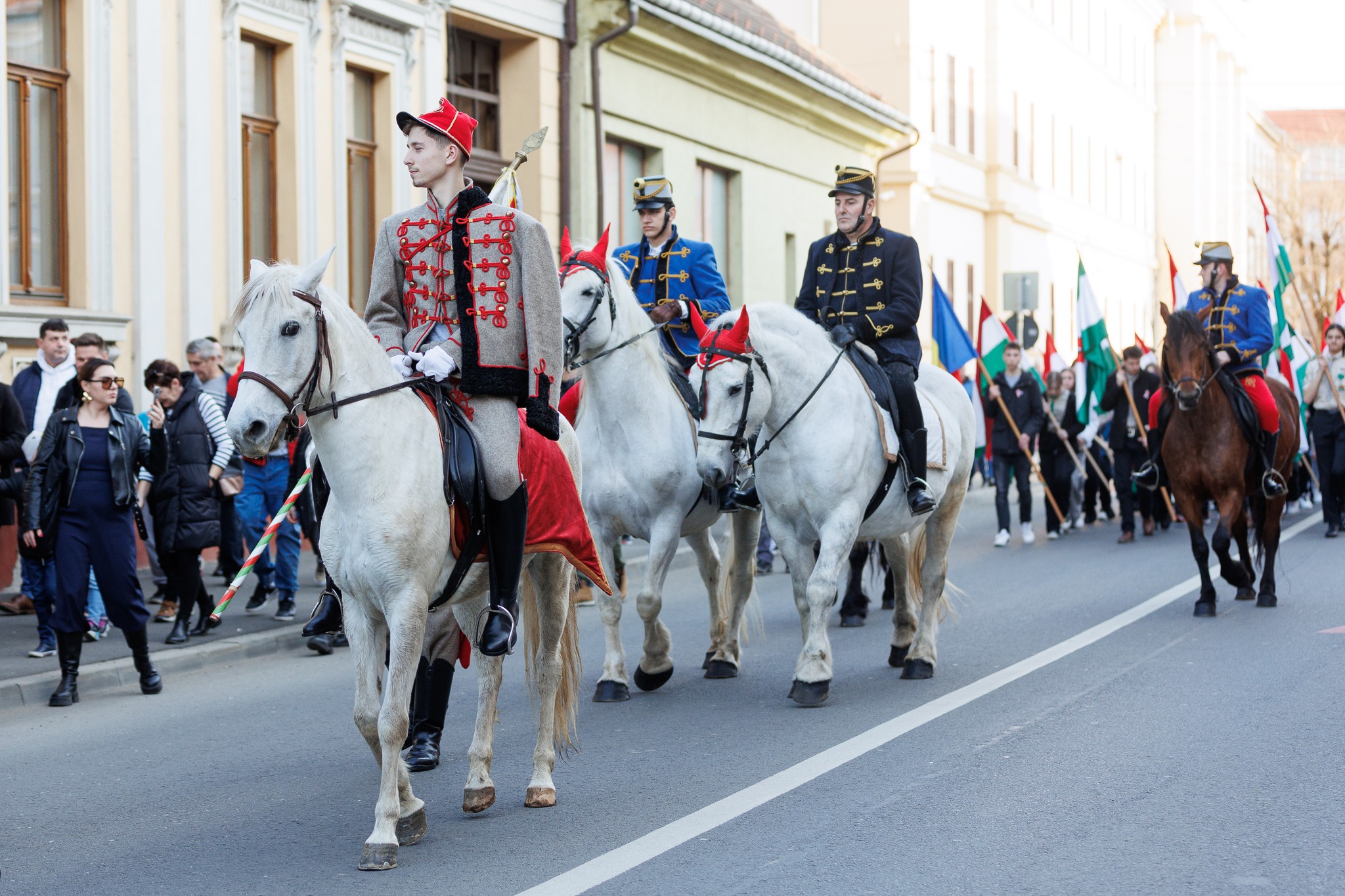 Asemeni fiecărui an, cei prezenți s-au adunat în zona ceasului electric unde au depus coroane de flori la Placa Memorială Petőfi Sandor după care, conduși de husarii călare au pornit spre statuia poetului din Piața Eroii Revoluției, traversând strada Ștefan cel Mare cu o impresionantă fanfară.