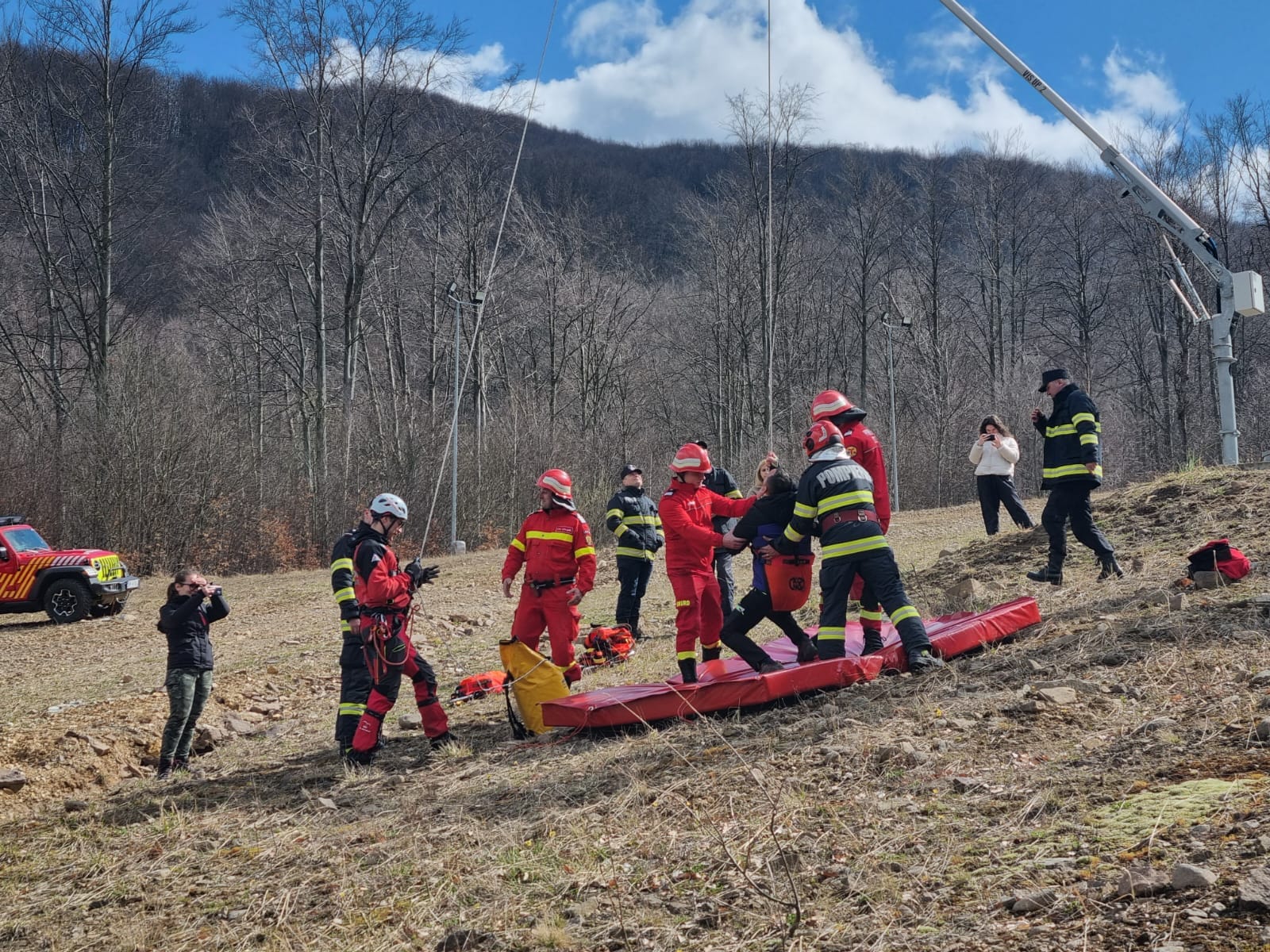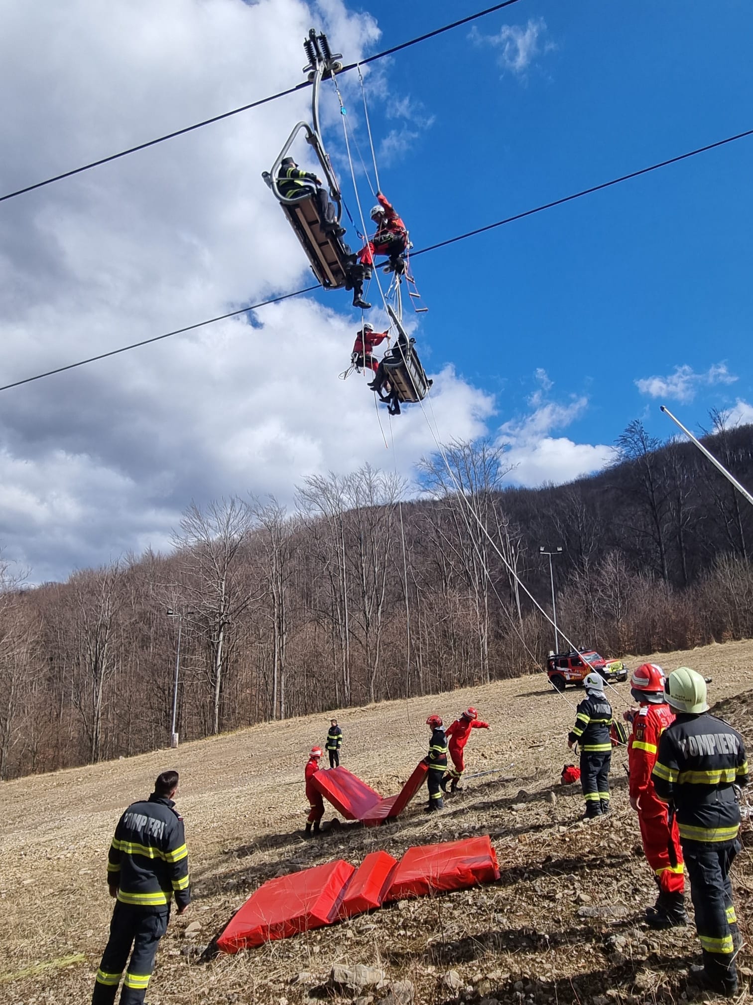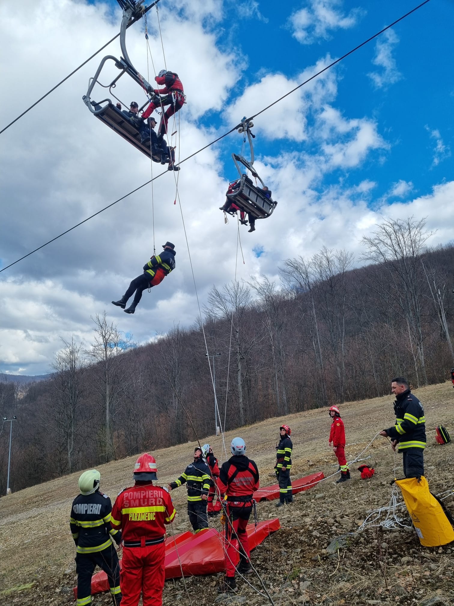 Pe pârtia Luna Ses, din localitatea Negrești-Oaș, a avut loc în data de 26 martie, un exercițiu având ca scenariu: Oprirea accidentală a instalației de telescaun cu 5 persoane rămase blocate la înălțime.