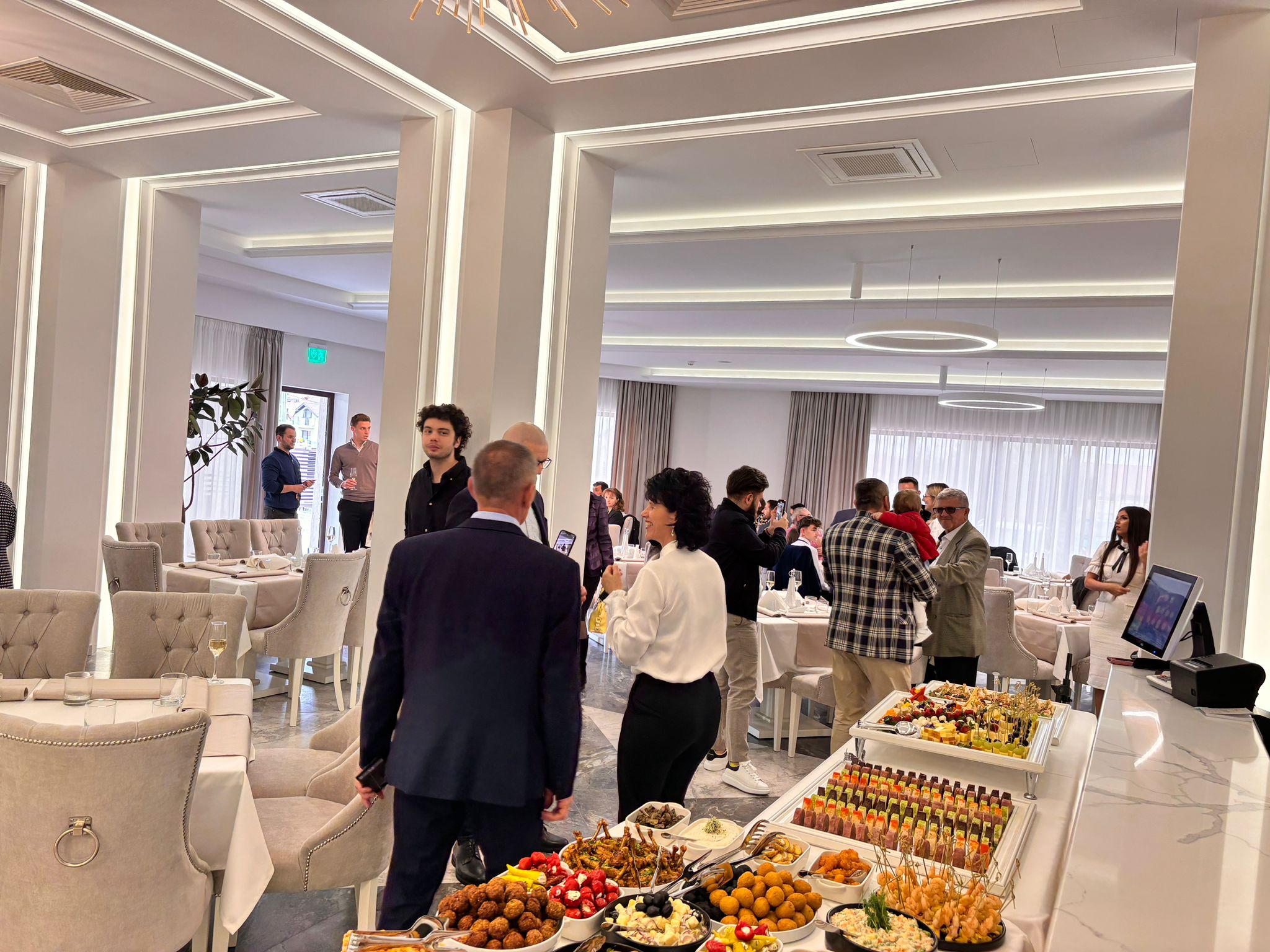 Evenimentul a fost presărat cu momente pline de bucurie și emoție, având alături familia și prietenii. Într-un gest simbolic, participanții au ciocnit un pahar de șampanie la intrarea în sala de recepție, marcând astfel momentul unic al deschiderii.
