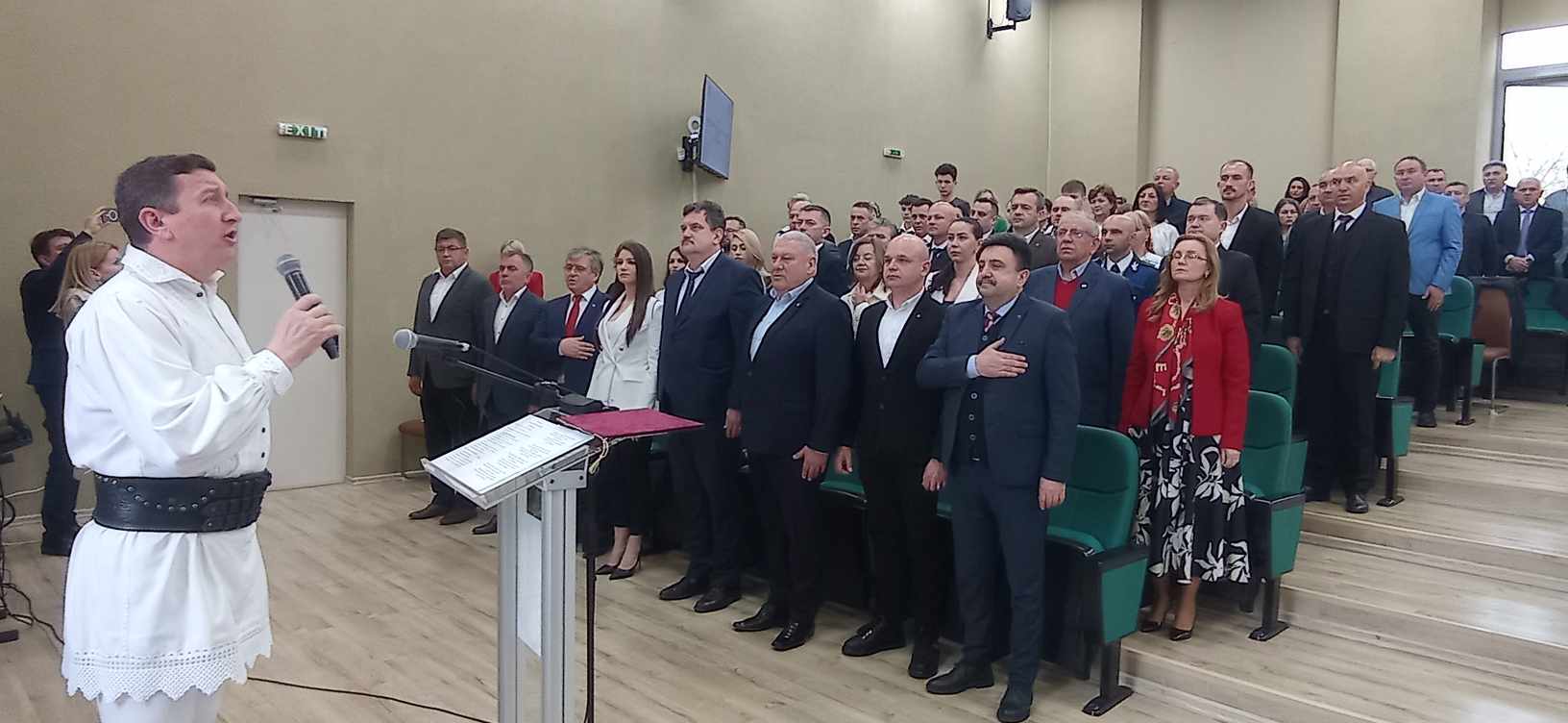 După un scurt cuvânt introductiv al lui Florin Mureșan, a urmat Imnul Național interpretat de cunoscutul interpret sătmărean Petrică Mureșan.