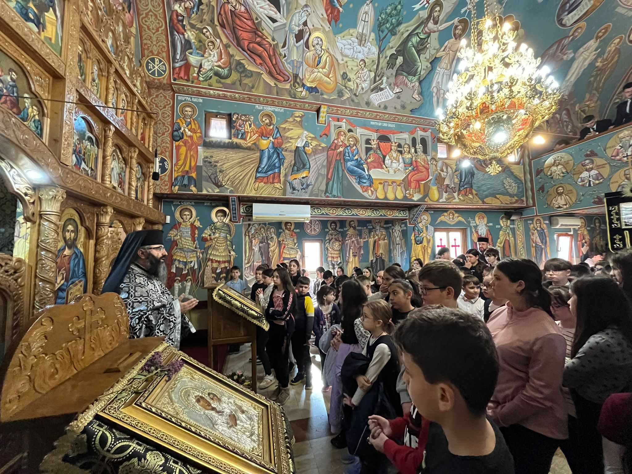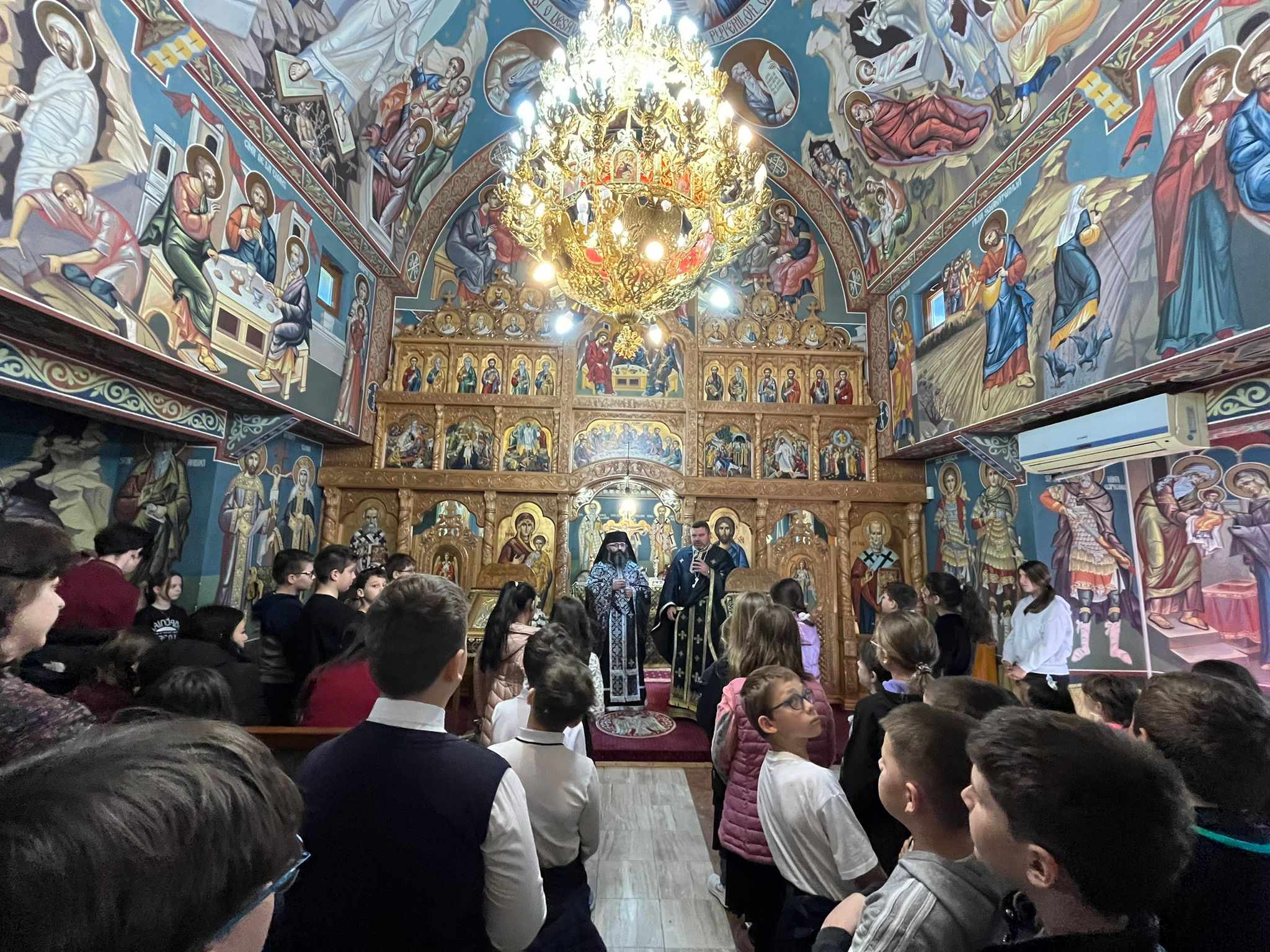 Părintele Protosinghel Spiridon Belei, starețul Mănăstirii Scărișoara Nouă, a săvârșit, la data de 3 aprilie 2024, Sfânta Liturghie a Darurilor Mai Înainte Sfințite, într-un sobor de preoți, în biserica Liceului Teologic Ortodox ”Nicolae Steinhardt” din Satu Mare.
