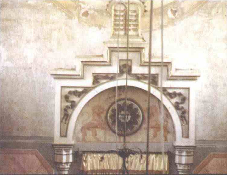 Nava centrală nu depășește cu mult în dimensiuni navele secundare. Fațada centrală și o parte a celor secundare formează o unitate, subliniată de poziționarea coloanelor decorate cu corole. Două dintre coloanele angajate de pe fațada navei principale sunt mai înalte decât restul coloanelor, formează conturul unei rame, amintind de templul lui Solomon.