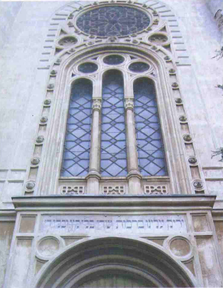 Fațadele secundare sunt divizate cu ajutorul pilaştrilor, iar la nivelul corurilor, nava este luminată cu ferestre triple, având deasupra ferestrelor friza care e decorată cu motivul repetat al Stelei lui David, iar limita superioară este prevăzută cu cornişe sub forma unor arcade. În partea din spate a sinagogii a fost realizată o absidă, ce adăposteşte nişa de păstrare a Torei, având în partea superioară o rozasă, iar fațada este încheiată cu un timpan.