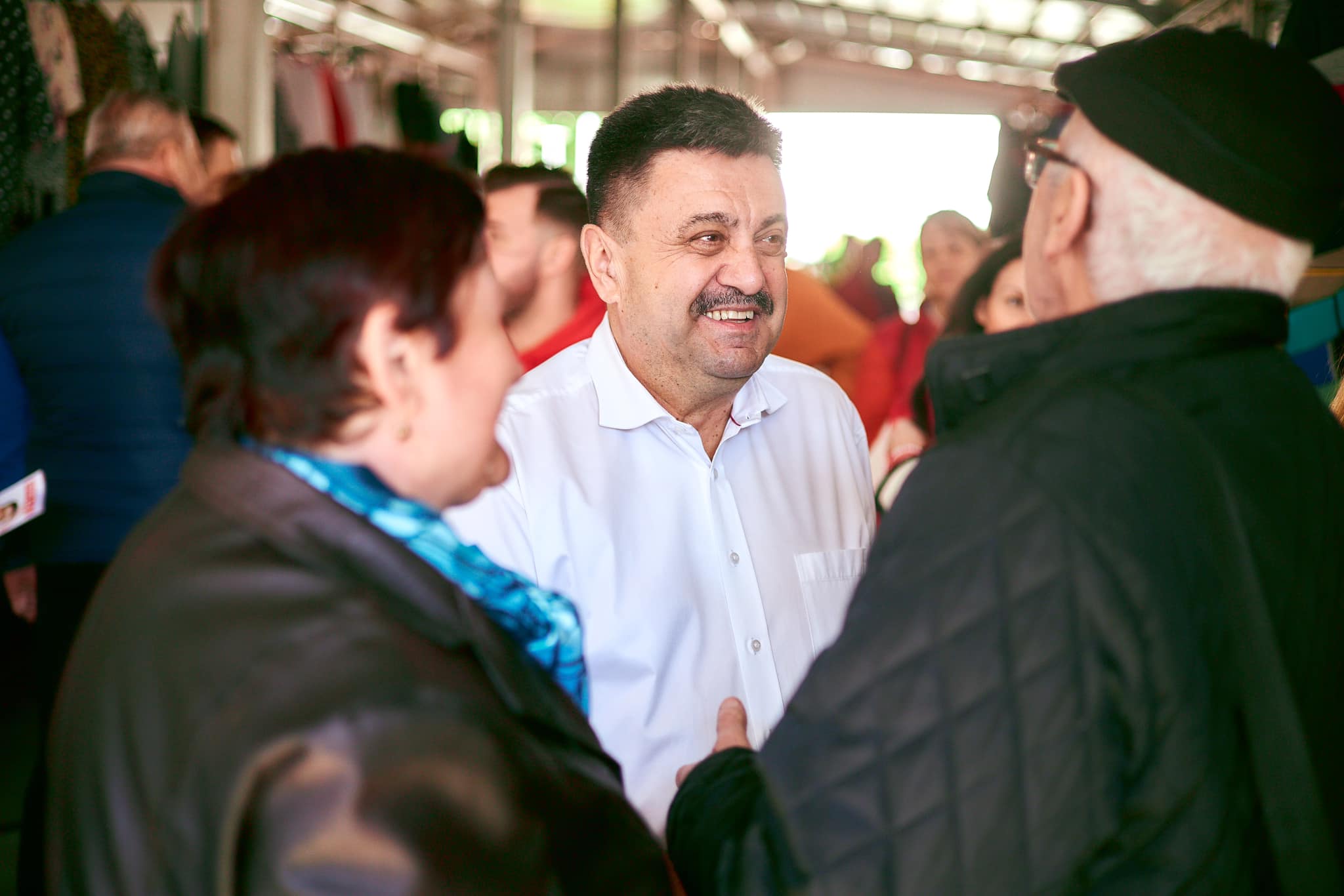 Candidatul PSD la Primăria municipiului Satu Mare, Radu Roca, însoțit de candidații PSD la Consiliul Local și de membrii staff-uluii de campanie s-a aflat printre precupeții din Piața din Micro 17.