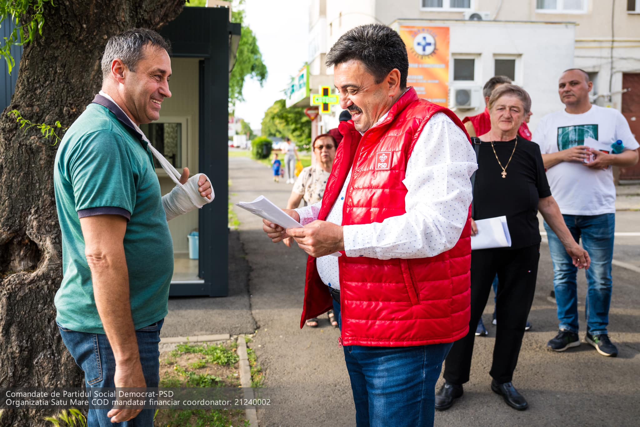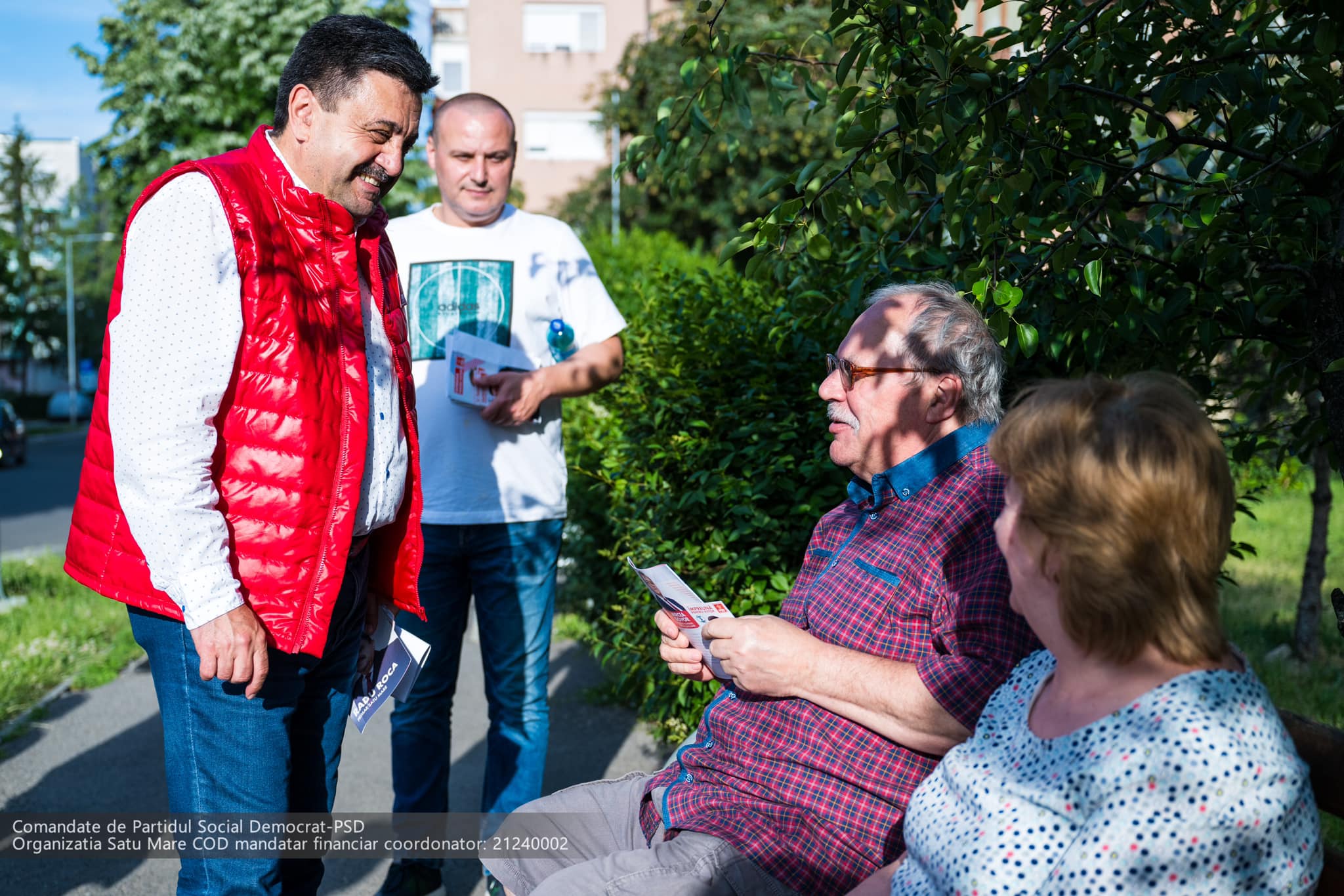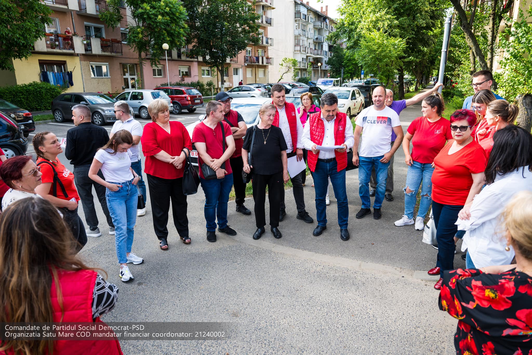 Candidatul PSD pentru primăria municipiului Satu Mare, Radu Roca, a fost în mijlocul locuitorilor din cartierul Carpați împreună cu echipa de candidați pentru Consiliul Local al Municipiului Satu Mare: viceprimarul Cristina Tămășan-Ilieș, viitorii consilieri locali, Mirela Suciu, Raul Băbțan, Alexandra Rusu, și stafful PSD de campanie.