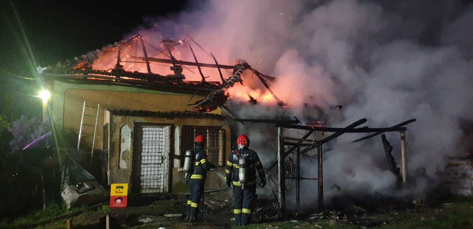 La fața locului s-au deplasat 14 cadre militare cu 3 autospeciale de stingere cu apă și spumă și un echipaj de prim ajutor. Ajunse la fața locului, forțele profesioniste au constatat că incendiul se manifesta generalizat la acoperișul casei și a terasei alipite, pe o suprafață aproximativă de 150 m². S-a intervenit de urgență pentru localizarea, limitarea și lichidarea incendiului înaintea propagării acestuia la casa de locuit și vecinătăți.