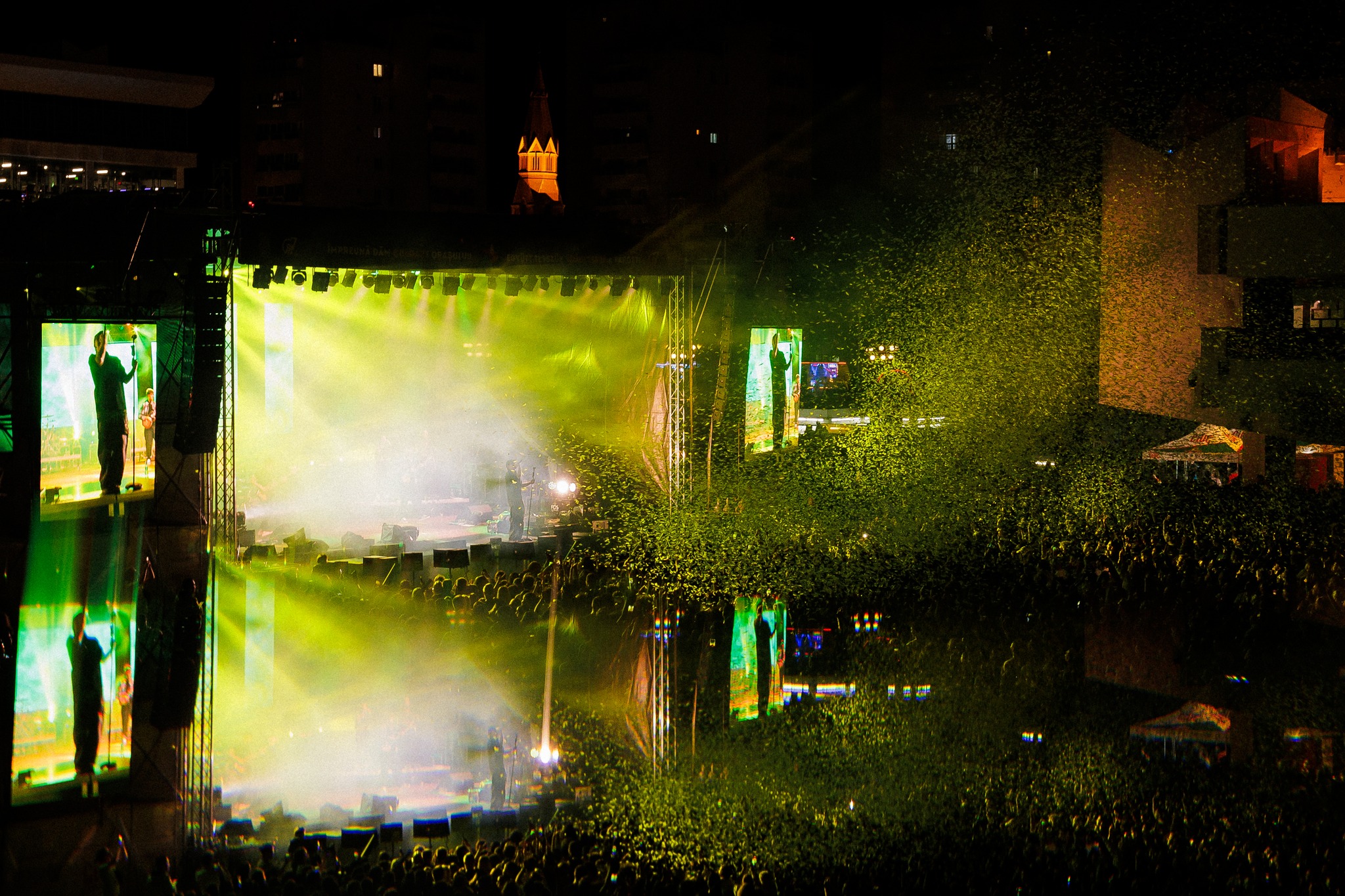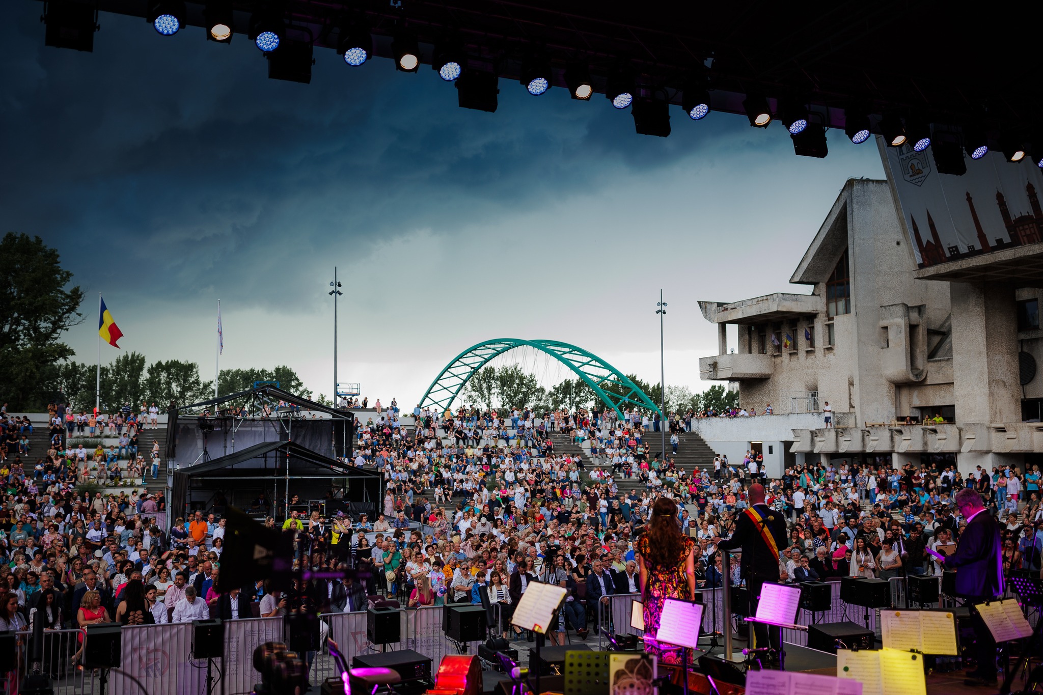 Între timp, deasupra orașului s-a abătut o furtună în toată regula. Satu Mare s-a aflat sub avertizare de vreme severă, fiind emis și un mesaj RO-Alert, iar sătmărenii prezenți în Piața 25 Octombrie au fost rugați să se adăpostească. Astfel că programul inițial a suferit unele mici modificări.
