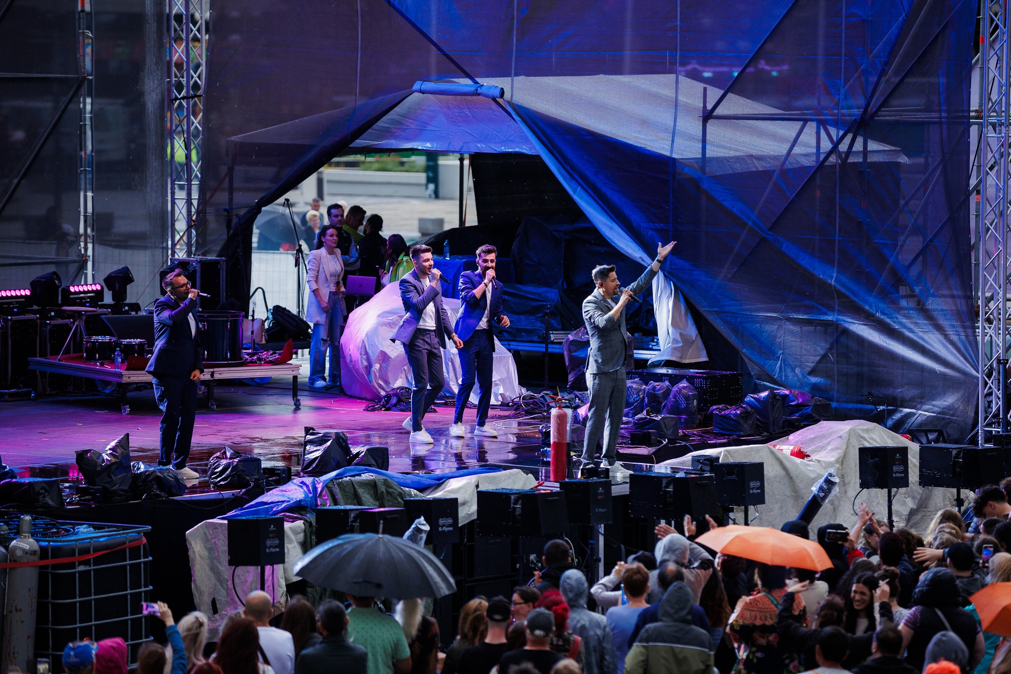 Din cauza vremii nefavorabile, băieții de la Ad Libitum Voices nu au mai putut fi acompaniați de Orchestra Filarmonicii Dinu Lipatti, însă ploaia nu i-a împiedicat pe artiști să încânte publicul cu un spectacol remarcabil.