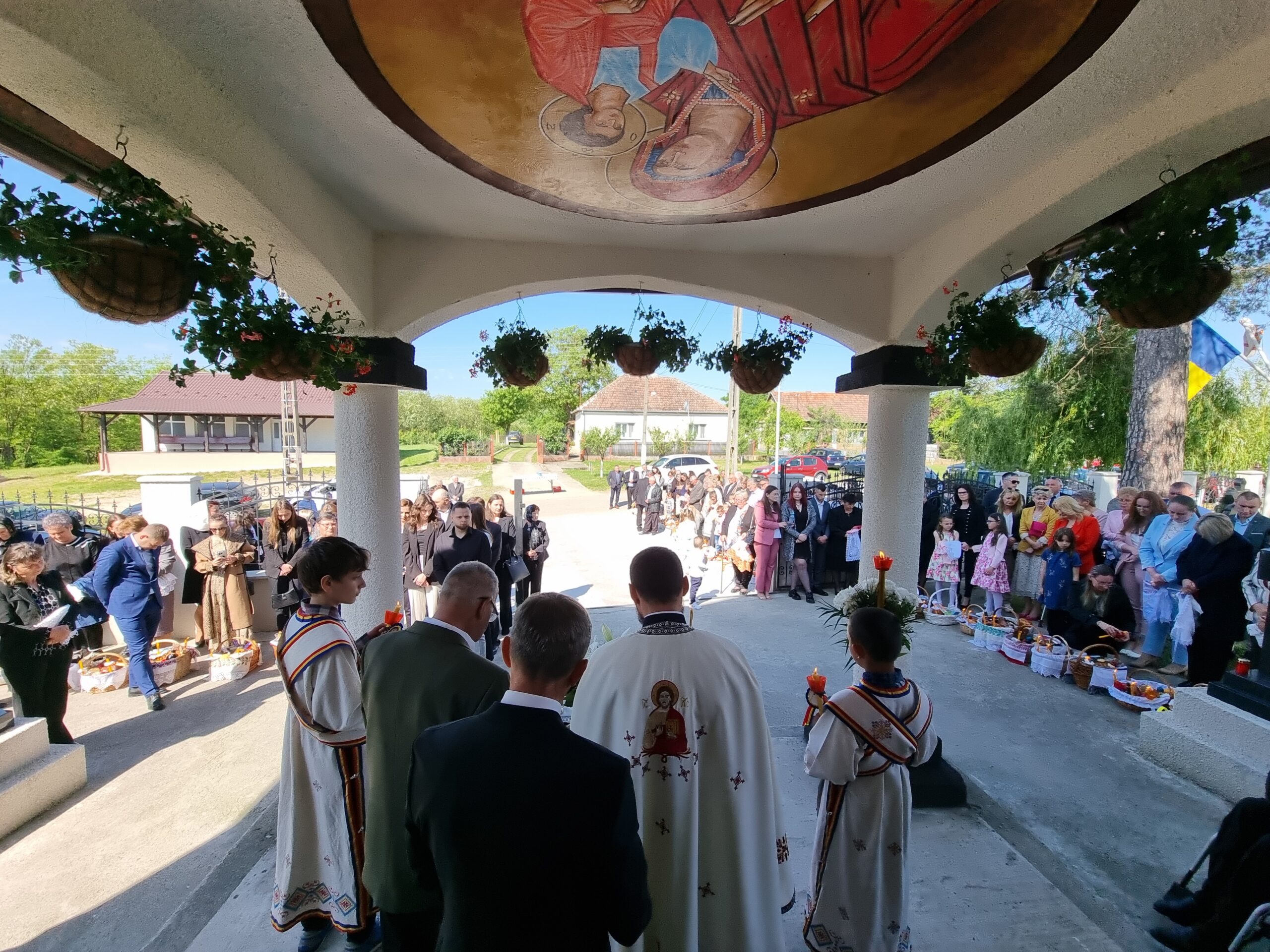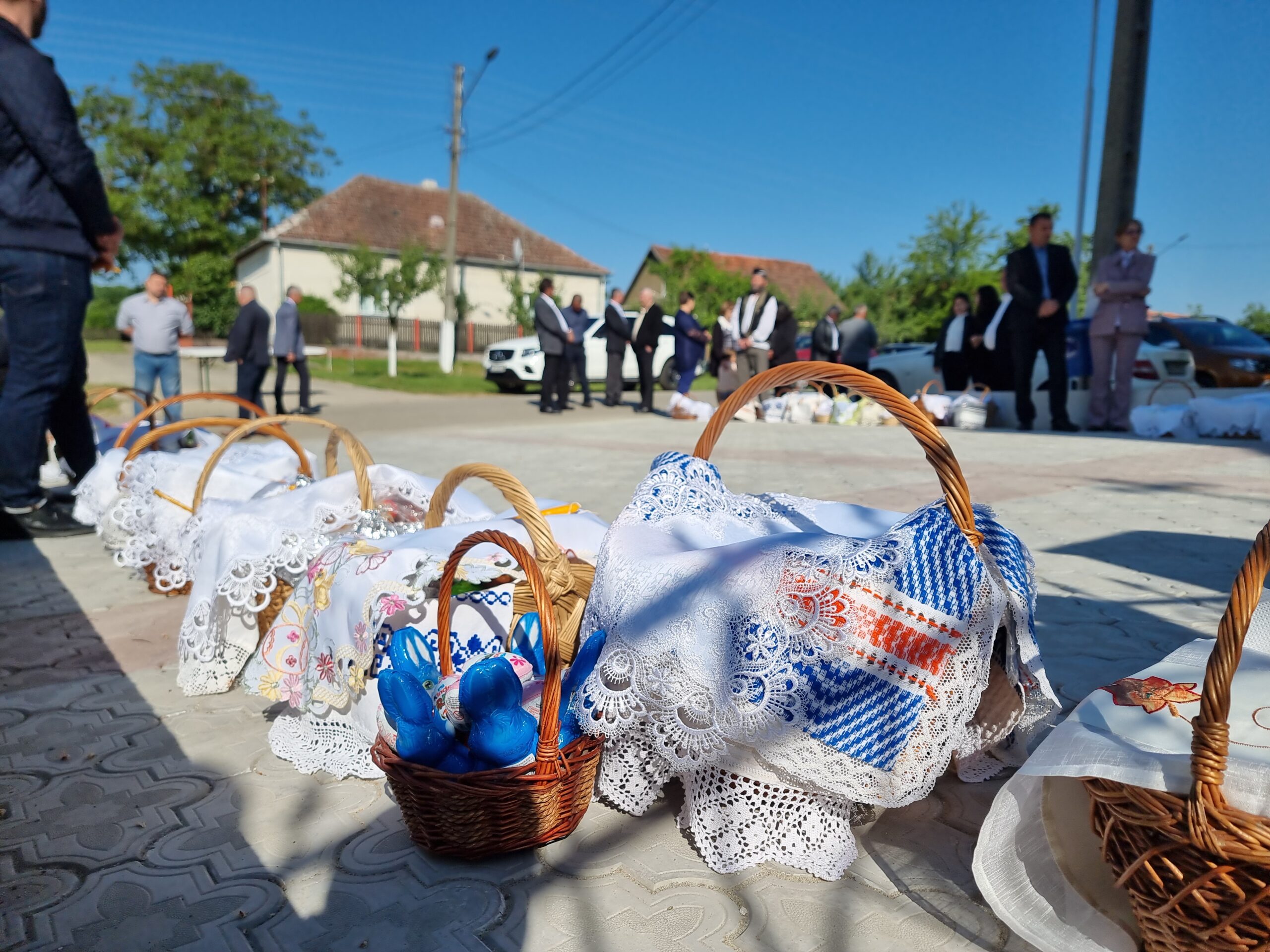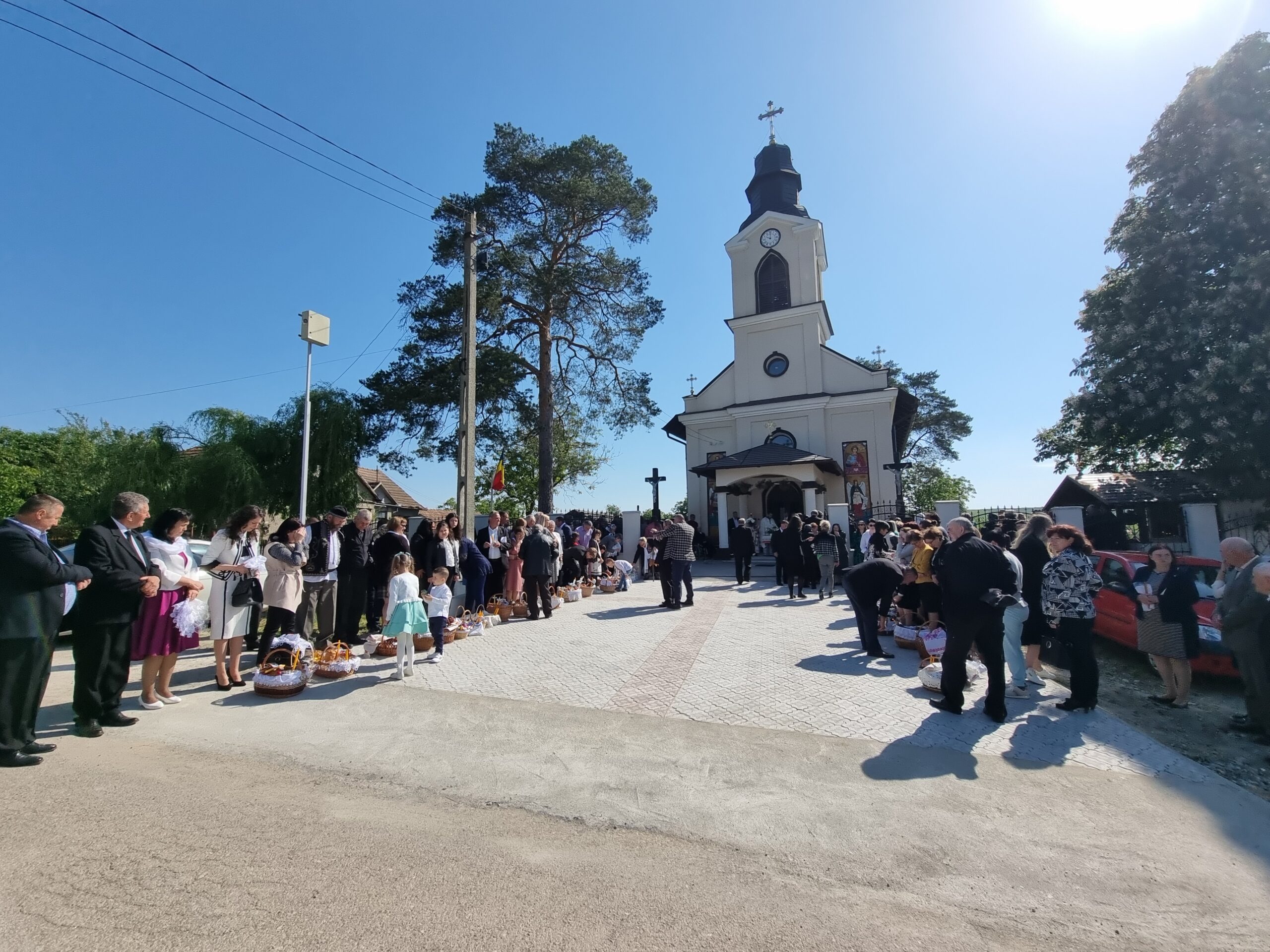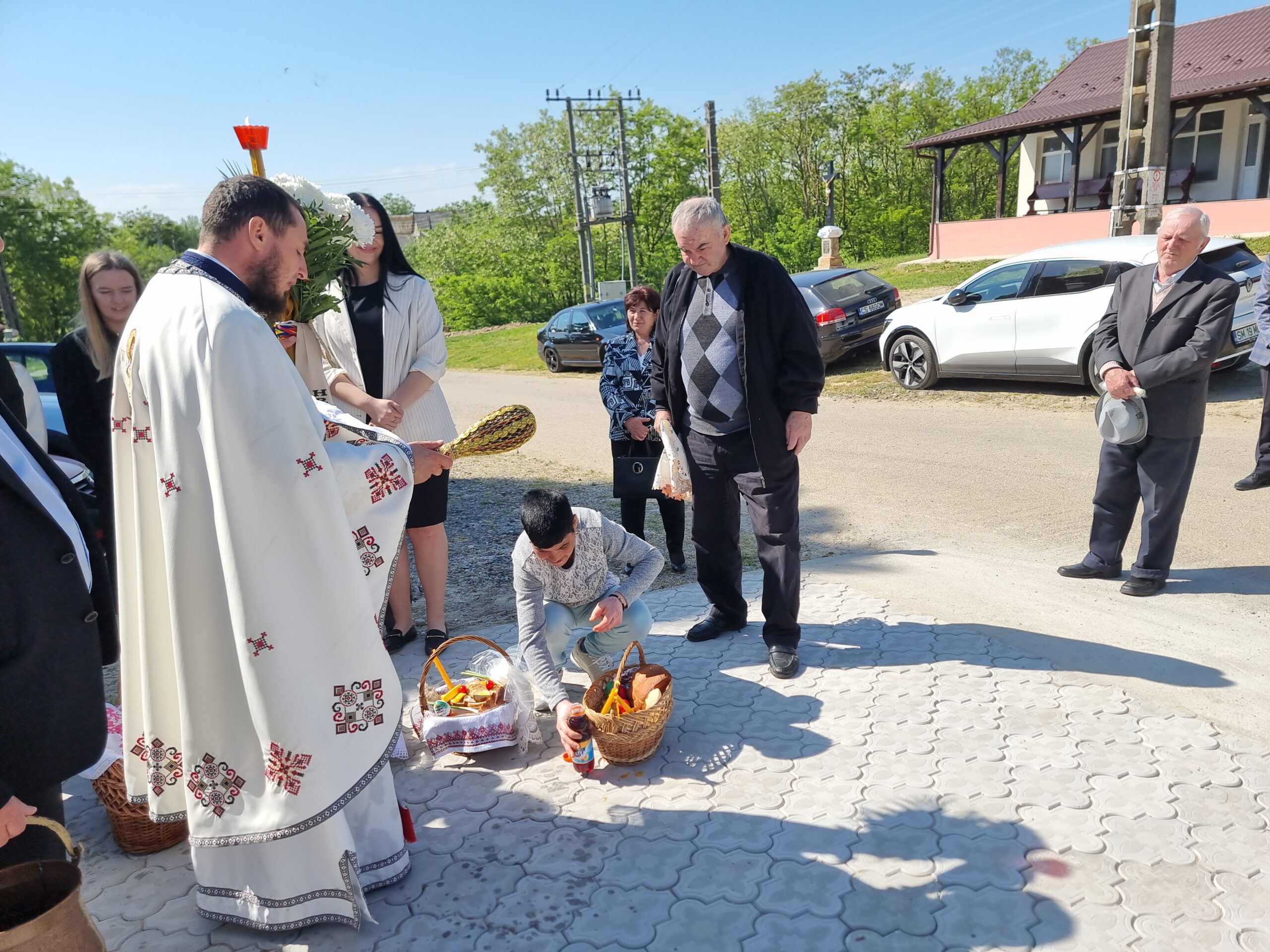 Sărbătoarea a fost primită cu bucurie de toți credincioșii din micuţul sat din judeţul nostru. A urmat apoi binecuvantarea si sfintirea cosurilor de Paste.