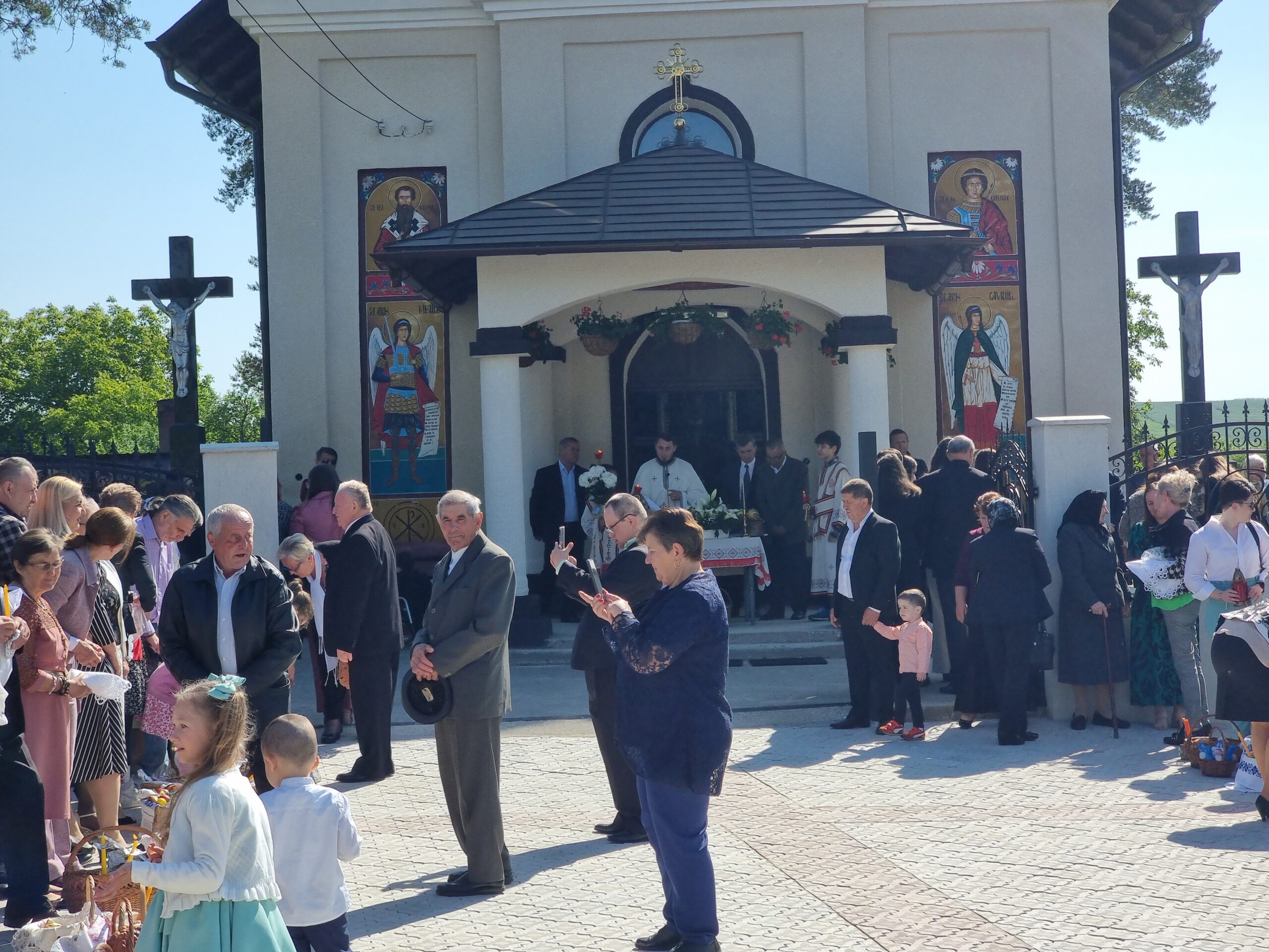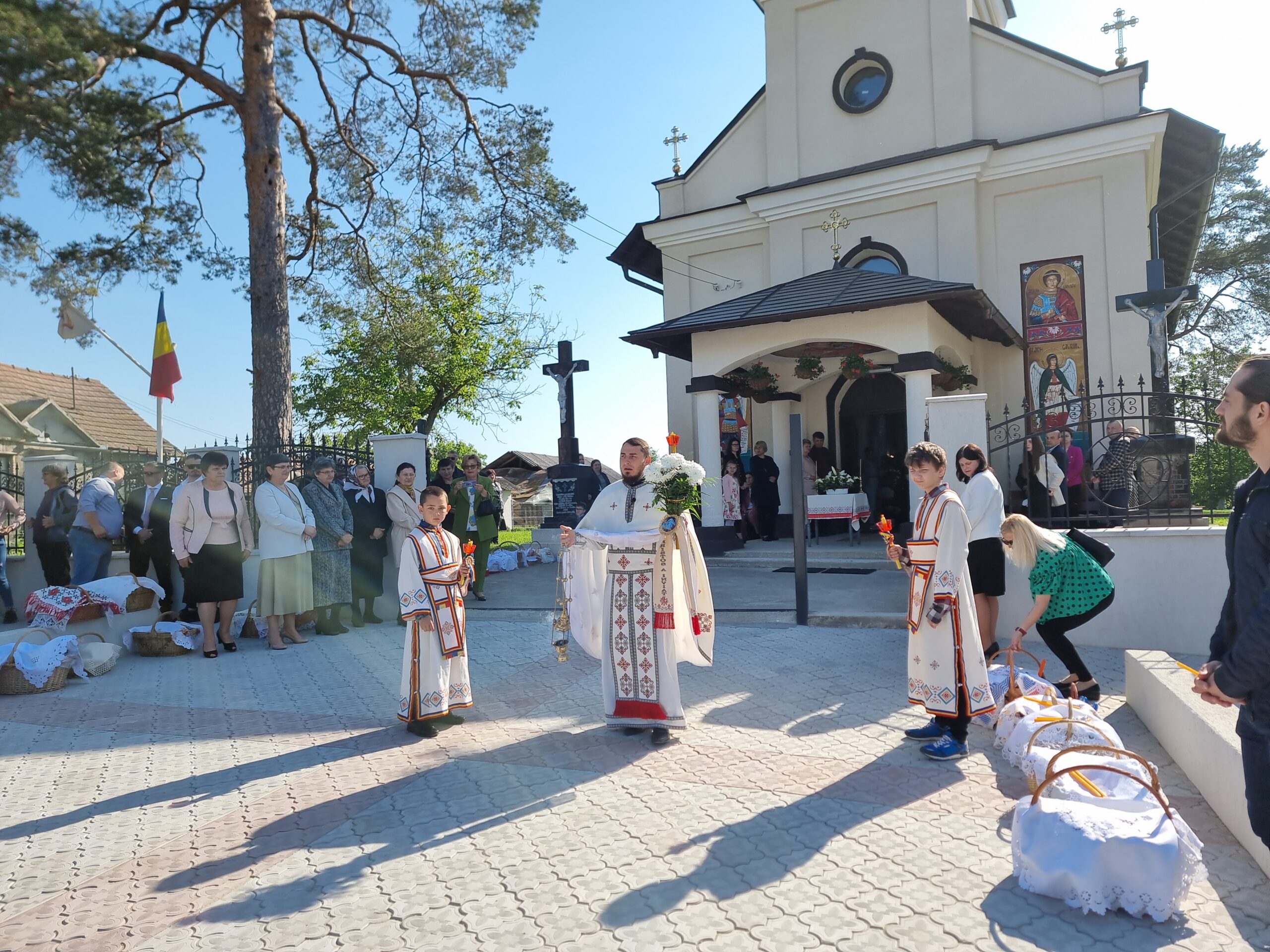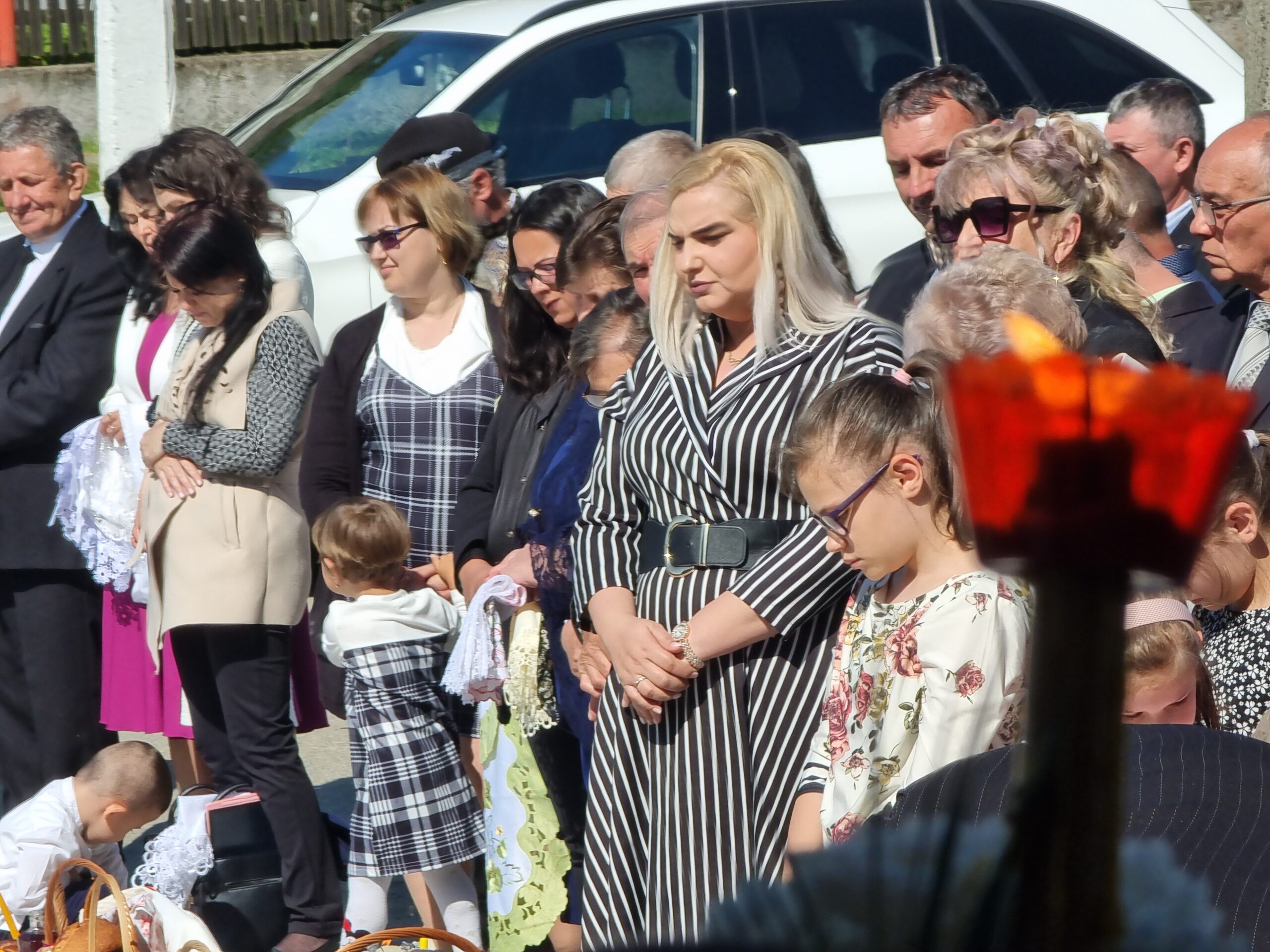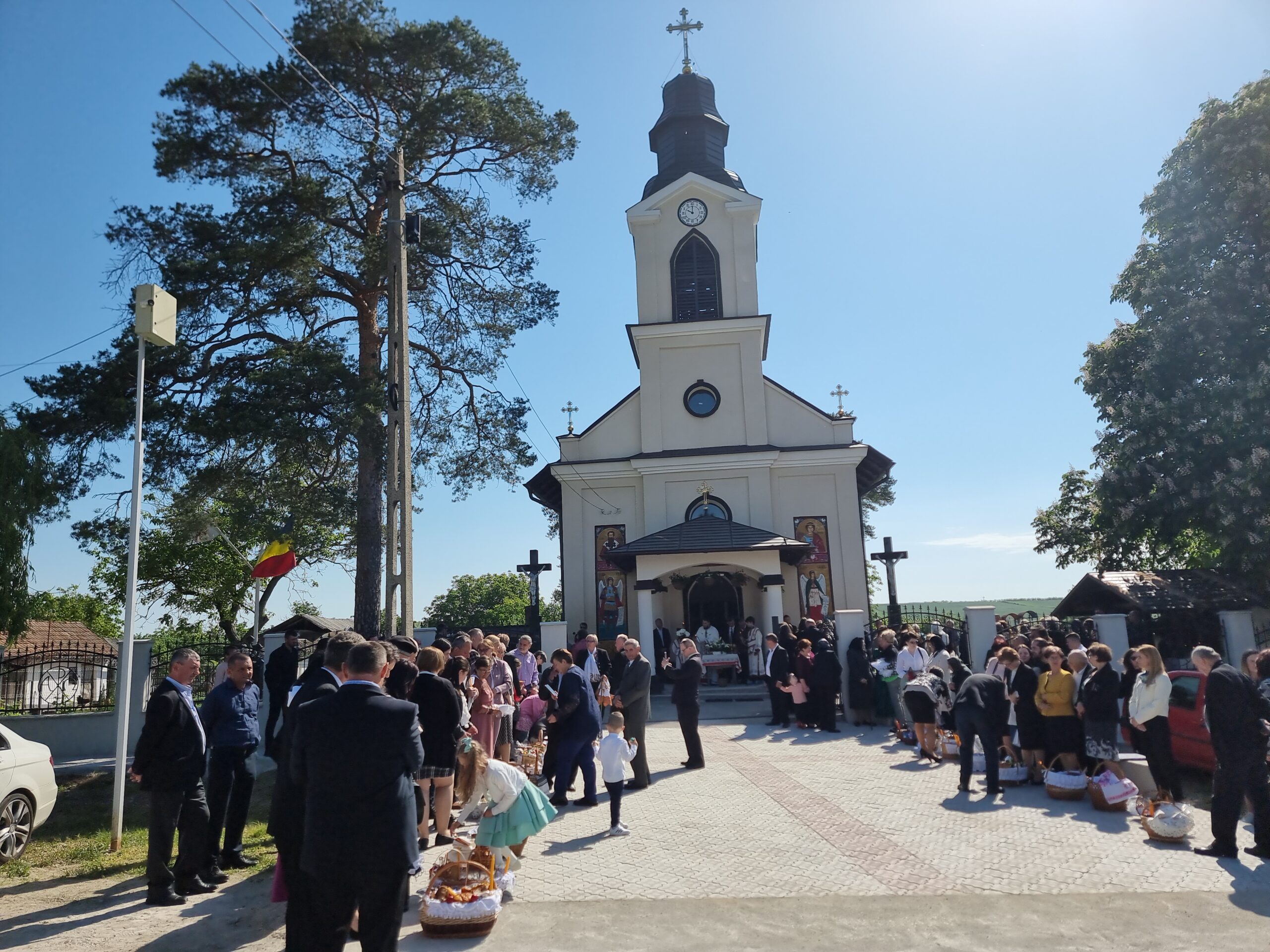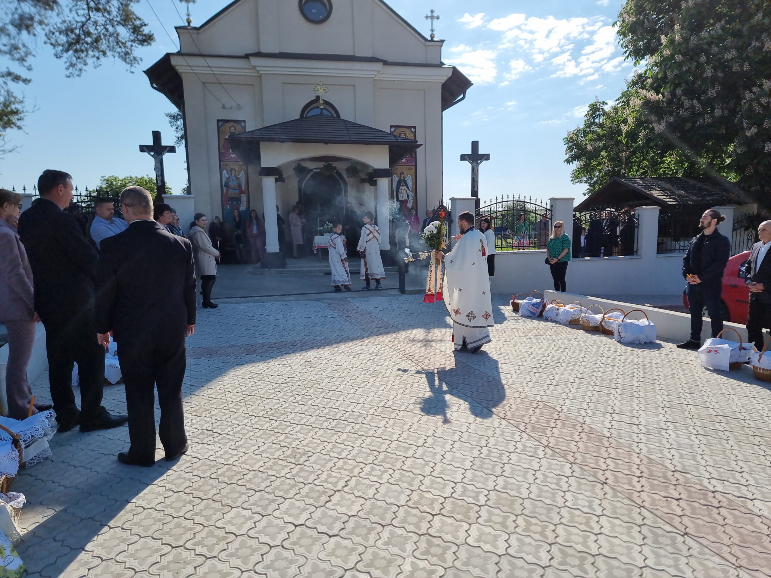 Sărbătoarea a fost primită cu bucurie de toți credincioșii din micuţul sat din judeţul nostru. A urmat apoi binecuvantarea si sfintirea cosurilor de Paste.