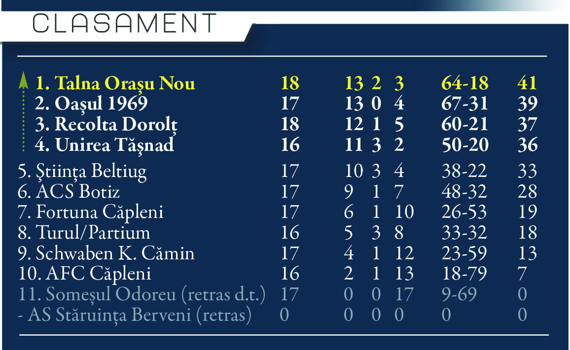 Unirea Tășnad a câștigat derby-ul cu Oașul Negrești Oaș, scor 3-1 și a rămas în cursa pentru titlu în Liga a 4-a elite.