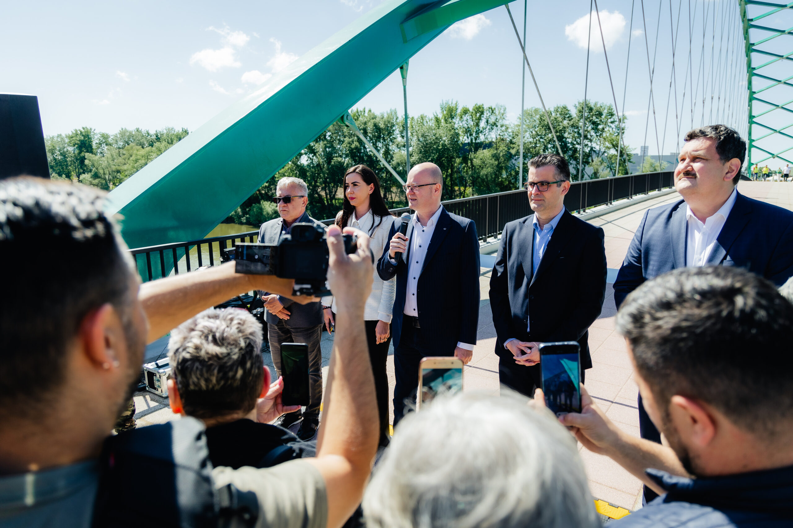 Mulțumesc sătmărenilor pentru răbadare și susținere. Îmi doresc să fie mândri de orașul lor. Mulțumesc proiectantului, mulțumesc constructorilor nu doar pentru munca depusă, dar mai ales pentru că au pus mult suflet în acest proiect. Nu cred că ați uitat spectaculoasa operațiune de punere a structurii metalice pe piloni. Continuăm și rămânem dedicați scopului nostru: vom face tot ceea ce ne stă în putinţă pentru Satu Mare şi pentru viitorul orașului nostru!’’, a declarat primarul municipiului Satu Mare, Kereskényi Gábor, la deschiderea accesului pe pasarela pietonală.