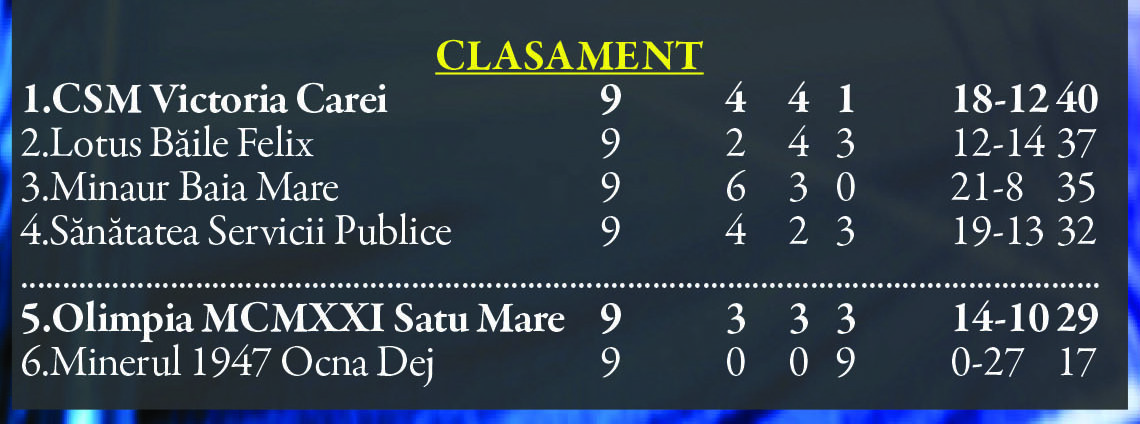 CSM Olimpia Satu Mare a ratat la ultima fază accederea în barajul de promovare în Liga a 2-a. CSM Sighet, echipa care i-a eliminat pe galben-albaștrii a reușit o nouă surpriză reușind să termine la egalitate, 0-0 acasă cu Gloria Bistrița, liderul seriei a 9-a.