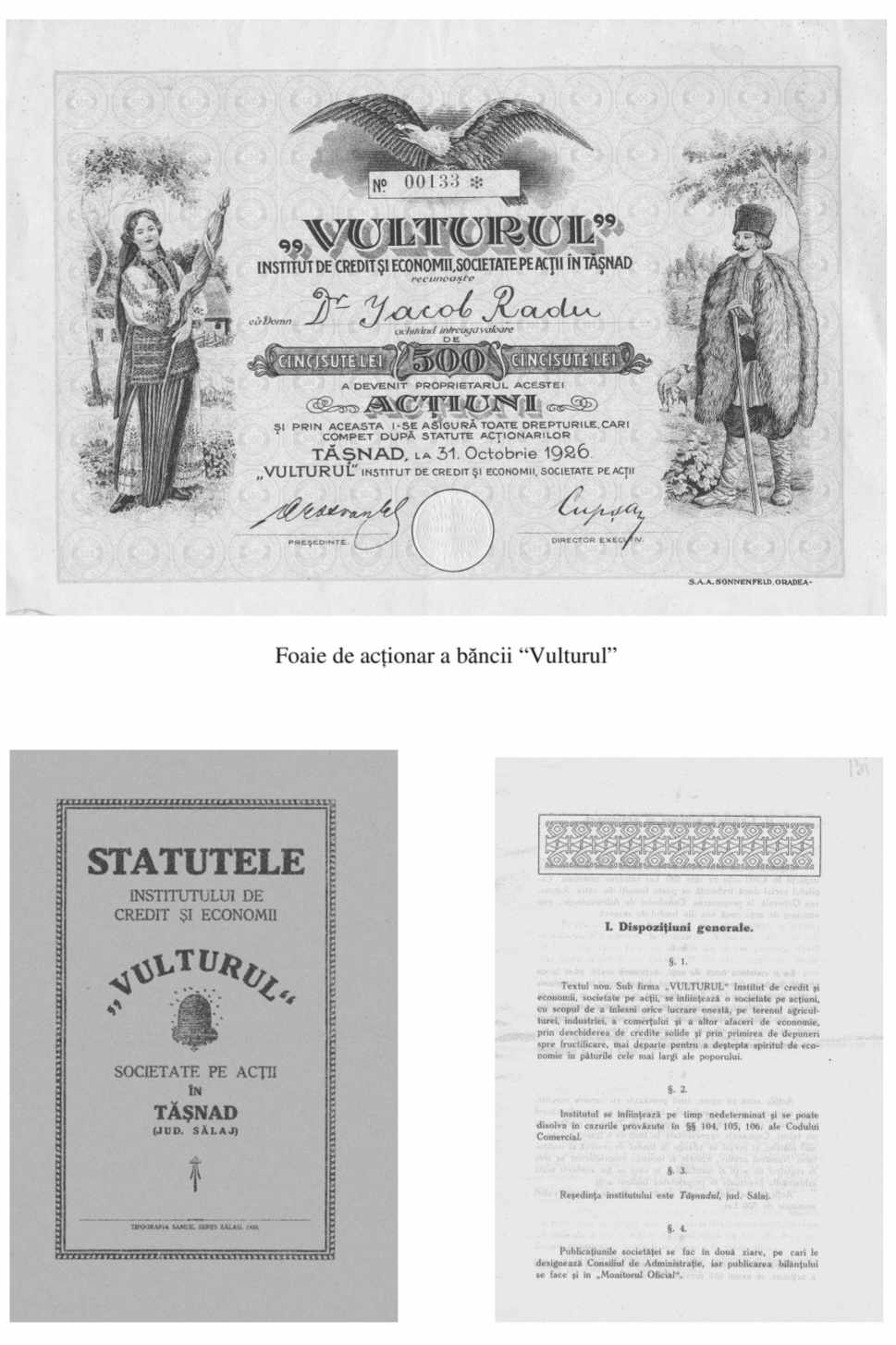 Din „Revista economică” aflăm că în anul 1910 capitalul social al băncii „Vulturul” era de 100.000 de coroane, avea 1501 fonduri rezervă şi avea 3 funcţionari.