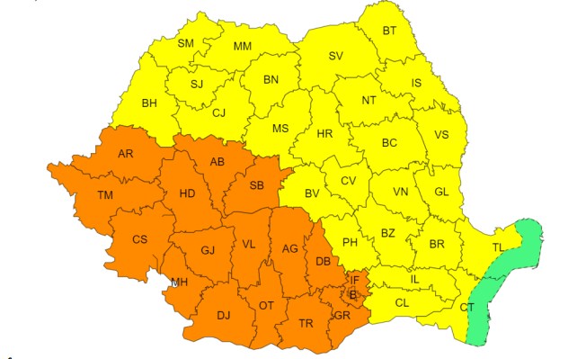 În același timp, valul de căldură se va intensifica în Banat, Oltenia, jumătatea de vest a Munteniei, precum și în sudul Crișanei și sud-vestul Transilvaniei, unde se vor înregistra temperaturi deosebit de ridicatep entru această dată. Maximele se vor situa, în general, între 33 și 37 de grade, va fi caniculă și disconfort termic accentuat, iar indicele temperatură-umezeală (ITU) va depăși pragul critic de 80 de unități. Noaptea va fi tropicală, cu temperaturi minime ce se vor situa în jurul valorii de 20 de grade.