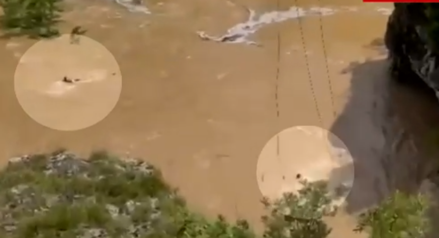 Într-o încercare disperată de a-i salva, pompierii au lansat, dintr-o scară mobilă, instalată deasupra porțunii în care râul face un cot, mai multe frânghii de care tinerii să se prindă.