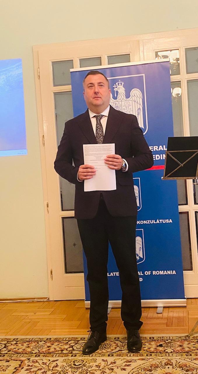 În încheierea programului, Florin Vasiloni, consulul general al României la Seghedin, a oferit tuturor participanților o recepție, în cadrul căreia s-au prezentat pe lângă bucate tradiționale românești, “Pita de Pecica” și s-au degustat vinuri din Podgoria Mocrea-Ineu, Arad.