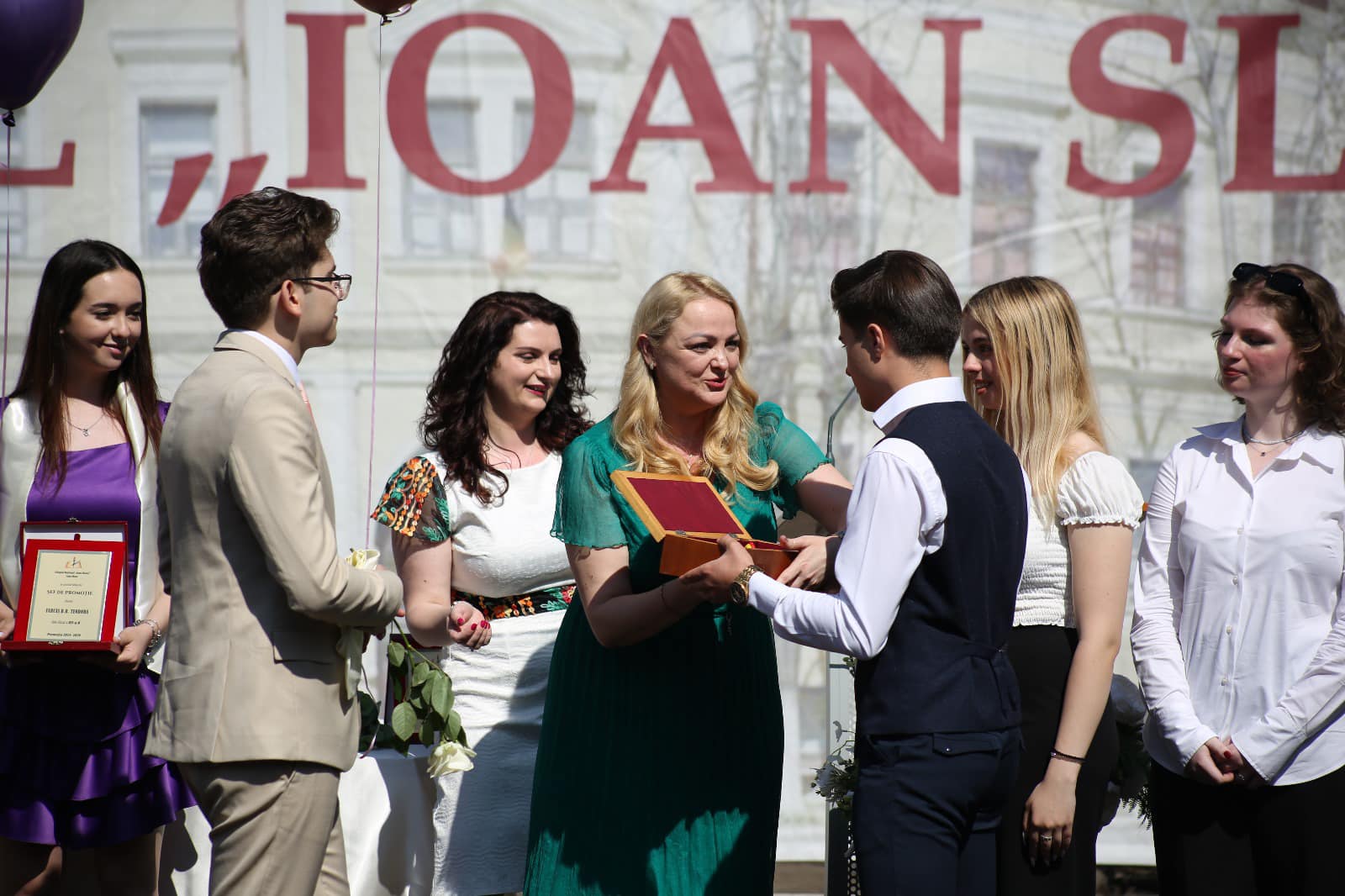 „Prindeți-vă sufletul în mână, dragii mei, cu gândul îndrăzneț! Sunteți pregătiți. O spun mereu absolvenților noștri, cu convingere: nicio altă școală nu v-ar fi putut pregăti mai bine! Fiecare provocare pe care o veți înfrunta va contribui la consolidarea caracterului vostru, transformându-vă în oameni determinați și integri, așa cum părinții voștri visează să deveniți. N-aveți frică. Porniți în viață la braț cu sinceritatea, entuziasmul tinereții și pasiunea cunoașterii. Și să nu uitați pe drum nici de iubire, acea forță care ne unește și ne dăruiește sens. Stăm în lumina soarelui cu toții și vă invit să privim spre aurora unei zile noi. Fiecare dintre voi are un potențial extraordinar și sunt convinsă că veți descoperi motivele pentru care ne-am întâlnit aici timp de patru ani. Veți căuta răspunsuri și vă veți defini valorile. Să nu credeți că nu veți înfrunta umbre în viață: așa ceva e imposibil pentru ființa omenească. Voi să luptați cu credință pentru meritele voastre, pentru adevărul ființei voastre. Să gândiţi mult. Fiindcă dacă gândirea îţi e săracă, nu-ţi poţi înţelege dorinţele şi nu le poţi construi”, a transmis directoarea Colegiului Național „Ioan Slavici”, Alina Dragoș.