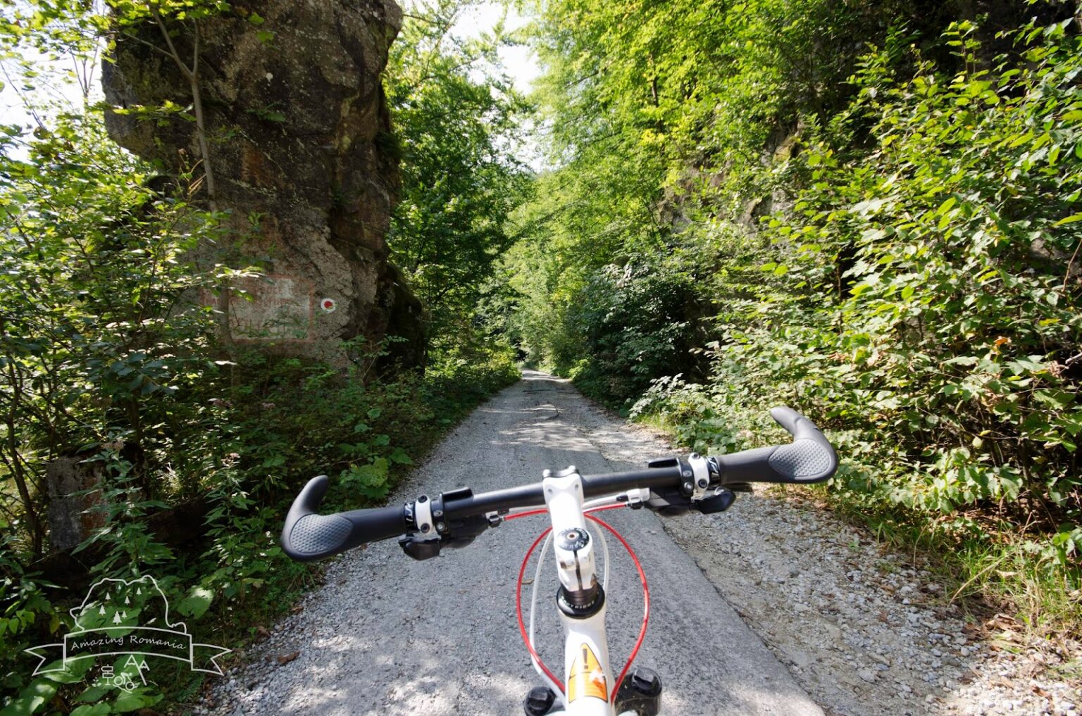 Drumul asfaltat continuă și după zona lacului, dar încet-încet asfaltul dispare și rămâne un drum de macadam numai bun de mountain bike.