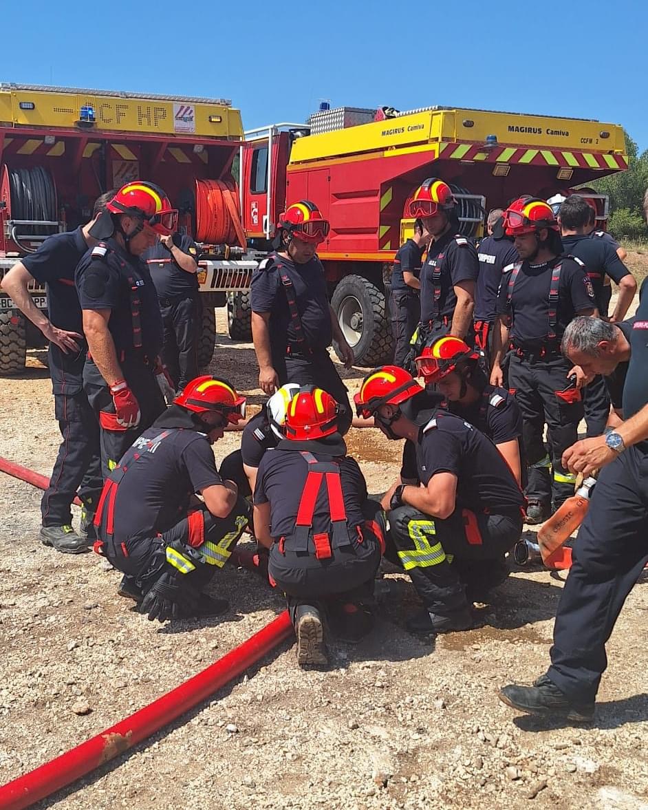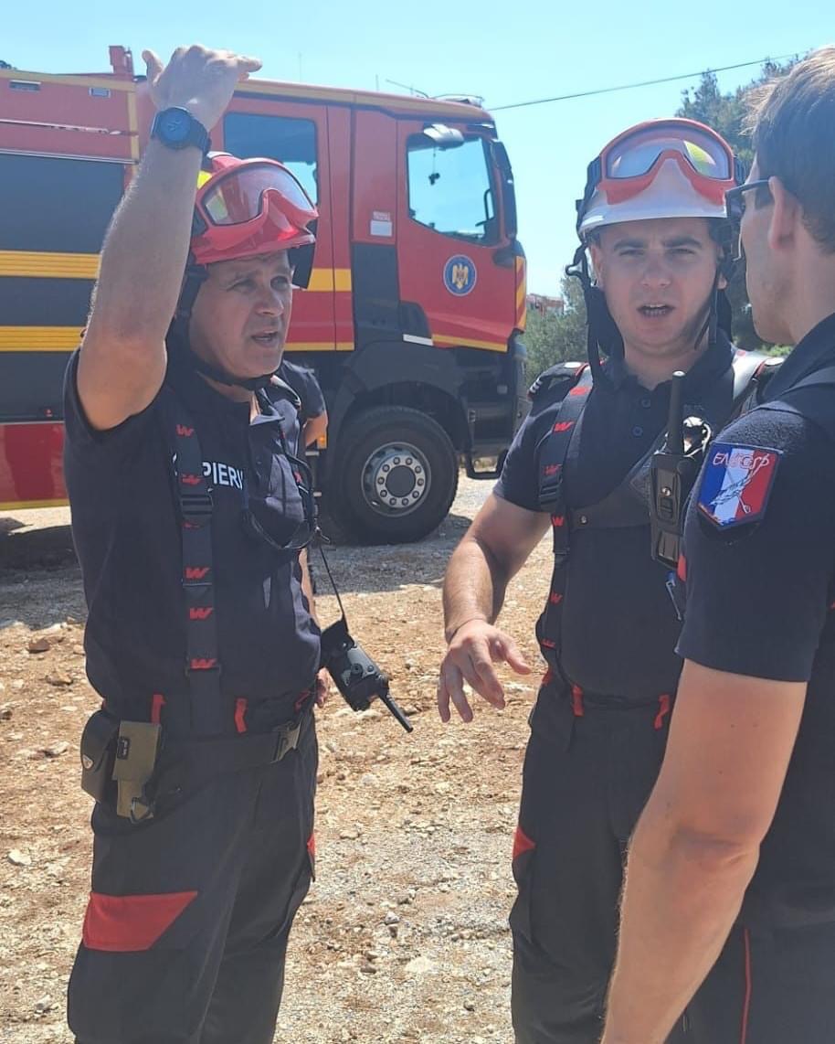 După ședința de lucru organizată în fiecare dimineață de către omologii francezi, la sediul Departamentului din Perpignan Nord, pentru stabilirea misiunilor zilnice, în funcție de nevoile identificate, precum și pentru planificarea exercițiilor de pregătire în comun menite să susțină schimbul de bune practici, în cursul zilei de ieri, 18 iulie, pompierii au executat activități de pregătire la sediul departamentului Perpignan Sud în care au fost prezentate tactici de utilizare a focului dirijat, echipajele specializate și dotările necesare în utilizarea focului tactic (metodele: foc contra foc și foc dirijat).