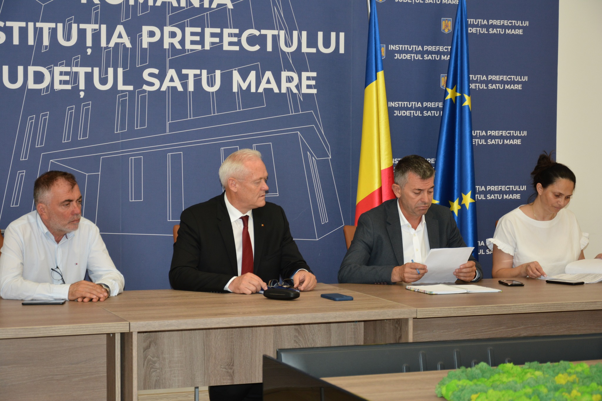 Prefectul Ioan Tibil , alături de directorul Cancelariei, Radu Iancu și de Secretarul General al Instituției Prefectului, Cosmin Dorle a avut azi o întâlnire cu reprezentanții Comisiei locale de de fond funciar Racșa, Ocolului Silvic Tăuții Magherăuși, Ocolul Silvic Negrești Oaș și reprezentanții Oficiului de Cadastru și Publicitate Imobiliară (OCPI) Satu Mare.
