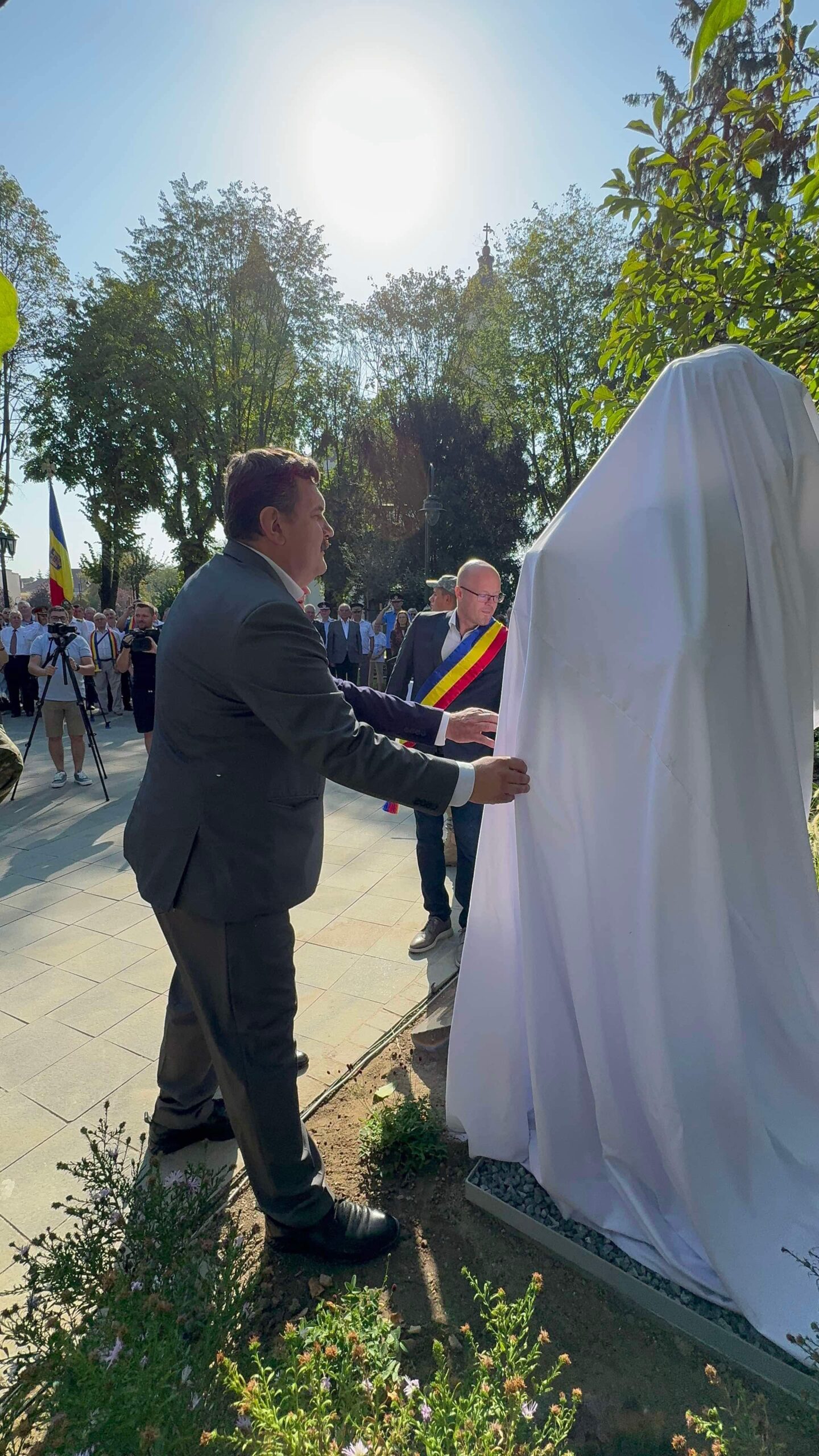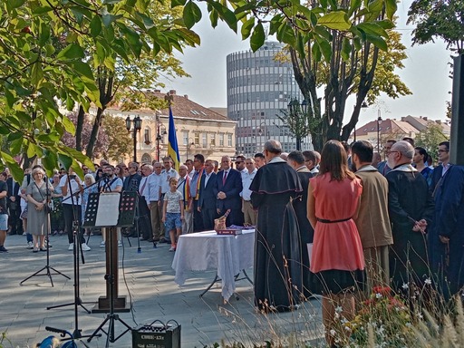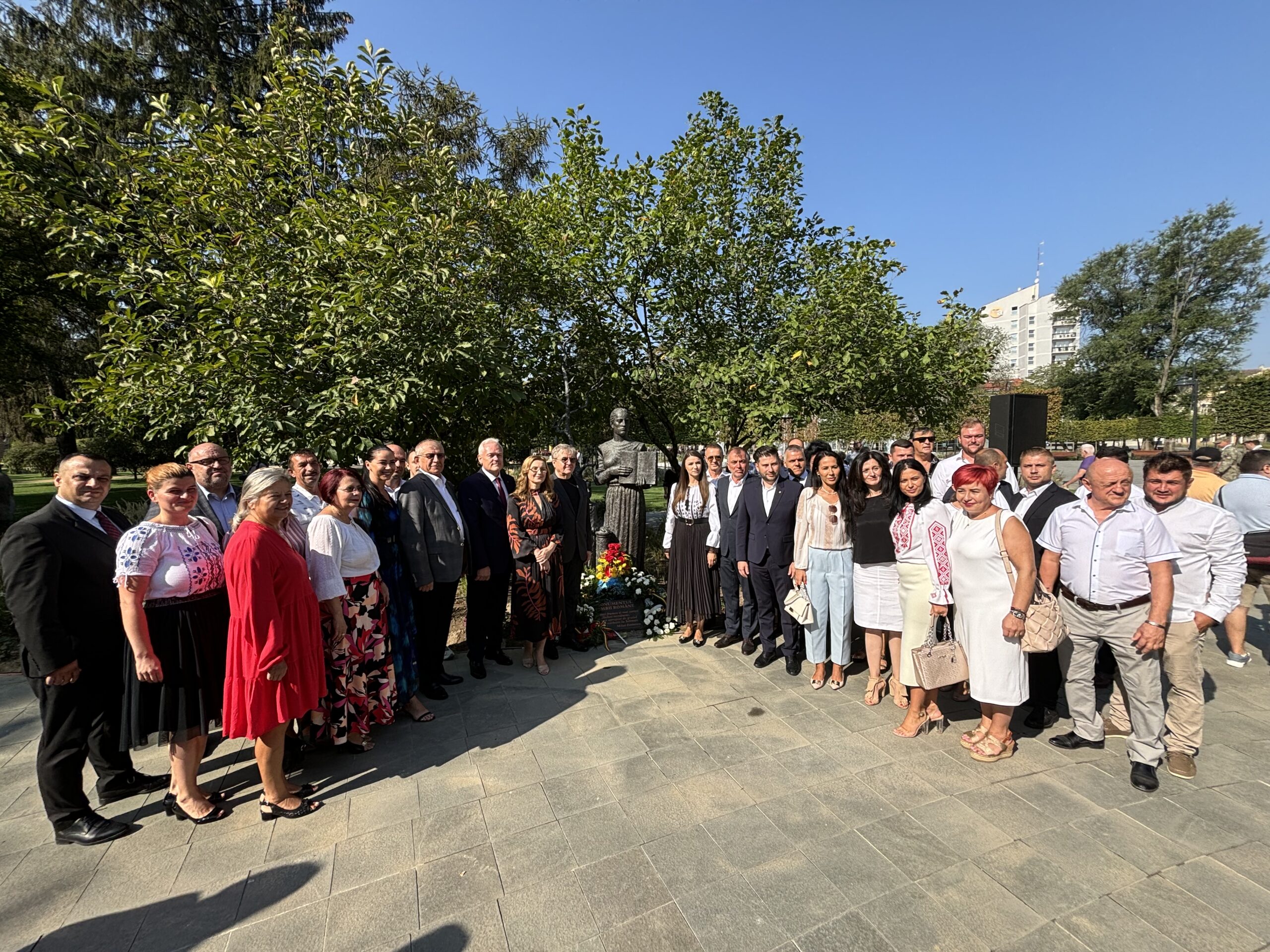 La acest eveniment special, au participat mulți sătmăreni, care și-au exprimat bucuria ca în sfarsit, monumentul a ajuns la locul pe care-l merită. În deschiderea manifestării, cunoscutul interpret de muzică populară, Petrica Mureșan a intonat Imnul României. Un sobor de preoți ortodocși și greco-catolici au oficiat o slujbă de sfințire a monumentului. Iar despre semnificația acestei zile solare, pentru identitatea romanescă a vorbit Robert Laszlo, managerul Centrul de Creație.