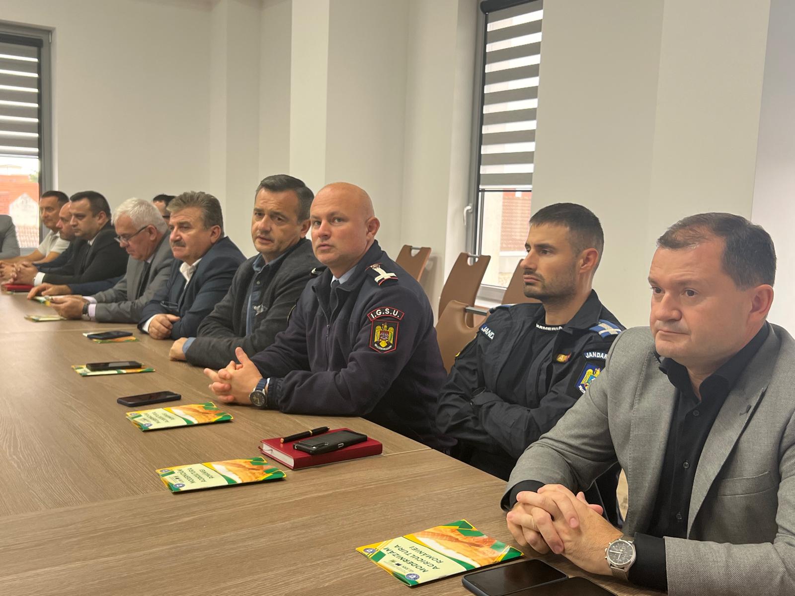 Prefectul Ioan Tibil alături de subprefecții Altfatter Tamás și Romeo Pop și de directorul Cancelariei, Radu Iancu a participat în data de 26 septembrie, la ședința Colegiului Prefectural, pe ordinea de zi fiind prezentată activitatea Direcției pentru Agricultură Județeană Satu Mare în anul 2024 pentru implementarea programelor destinate fermierilor din județ.