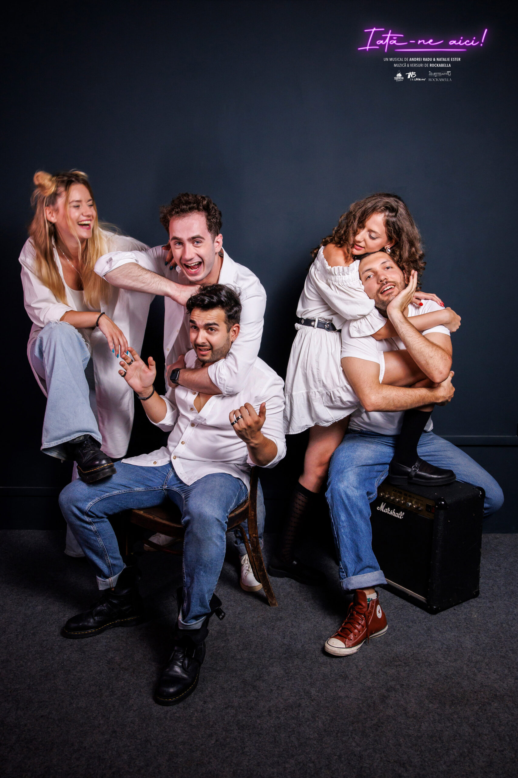 Produs de Touchstone Creative, în parteneriat cu Teatrul Național „I. L. Caragiale” București, „Iată-ne aici!” este un musical emoționant care surprinde lupta tinerilor între visurile lor și realitatea migrației, într-o căutare continuă a identității și a locului numit „acasă”.