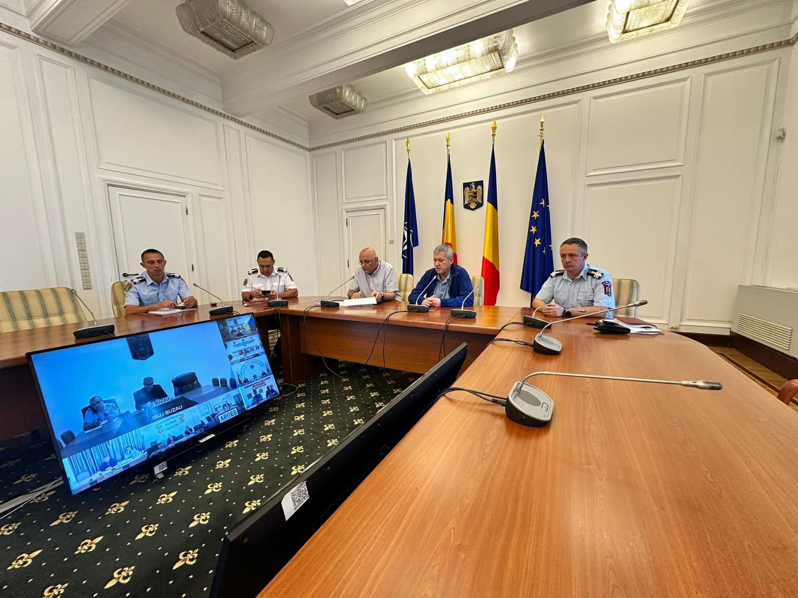 Astăzi, 28 septembrie a.c., la sediul MAI, viceprim-ministrul, ministrul Afacerilor Interne, Cătălin Predoiu, a convocat o videoconferință, în prezența secretarului de stat, șef al DSU, dr. Raed Arafat, și a prim-adjunctului inspectorului general al IGSU, colonel Florea Constantin, cu prefecții și inspectorii șefi ai Inspectoratelor pentru Situații de Urgență județene.