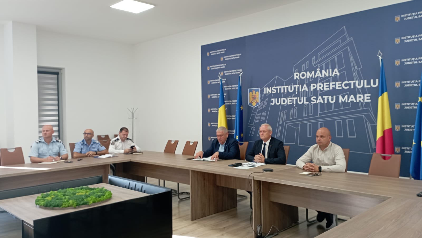 Prefectul Ioan Tibil alături de subprefecții Altfatter Tamás și Romeo Pop și de șefii structurilor de siguranță și ordine publică, inspectorul școlar general și reprezentantul Direcției de Sănătate Publică Satu Mare a participat marți la ședința de lucru în format videoconferință cu prefecții din țară pe tema Planului național de combatere a violenței școlare, aprobat prin HG 1065/2024, convocată de ministrul educației, Ligia Deca și de secretarii de stat din cadrul Ministerului Afaceriloir Interne, Aneta Matei și Bogdan Despescu.