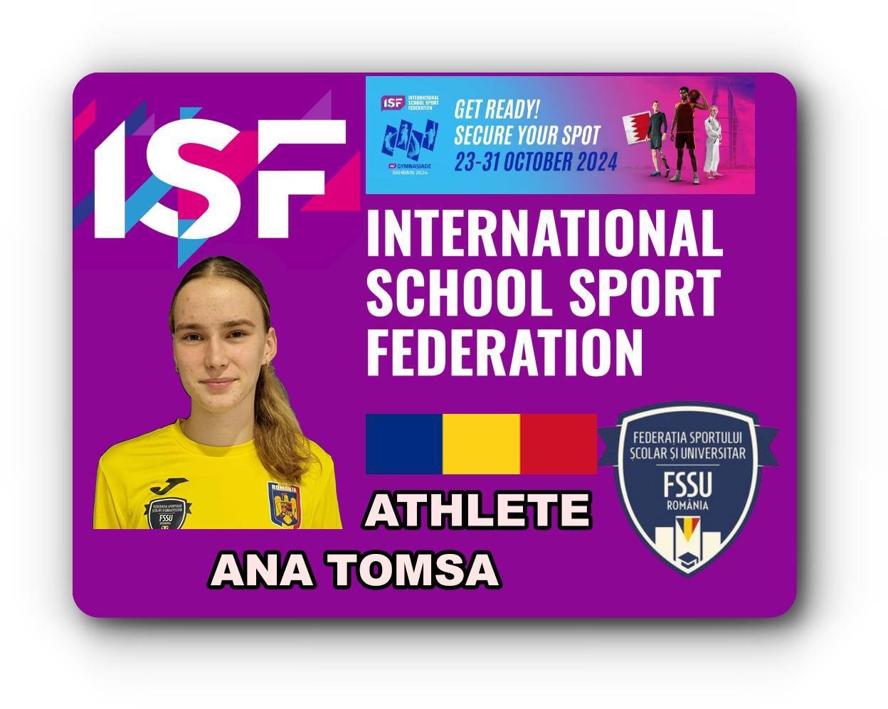 România participă în perioada 23-31 Octombrie 2024 la ”ISF U 18 Gymnaziade” care are loc la Manama/BAHRAIN!